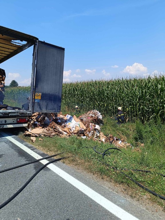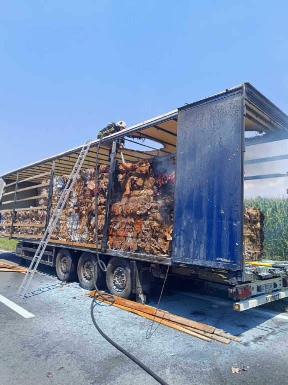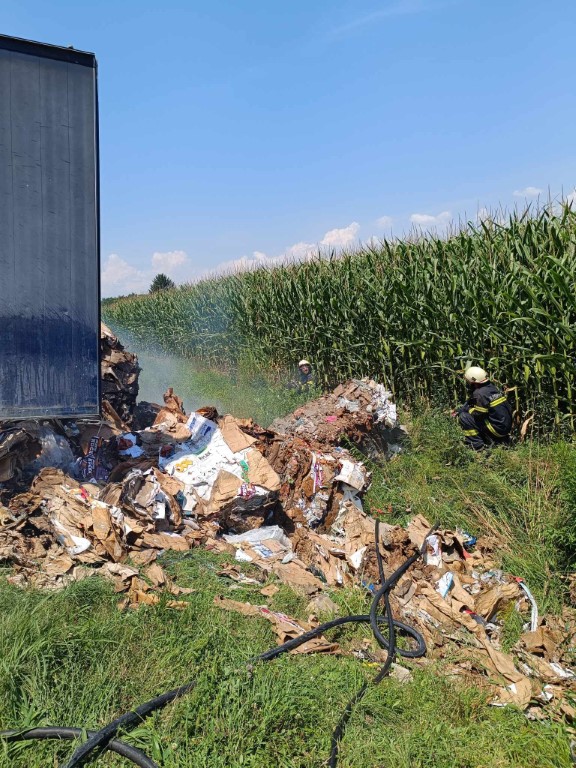 U samom kamioni nalazilo se 20 bala prešanog papira, od kojih je 8 gorilo. Brzom intervencijom sprječavamo daljnje širenje požara. Gašenje provodimo s dva mlaza brze navale. Zahvaljujemo tvrtki Urbanizam d.o.o. koja nam je ustupila kombinirku kako bi mogli gorive bale prešanog papira izvuči van iz same prikolice u kanal, te dovršiti raskopavanje i gašenje.