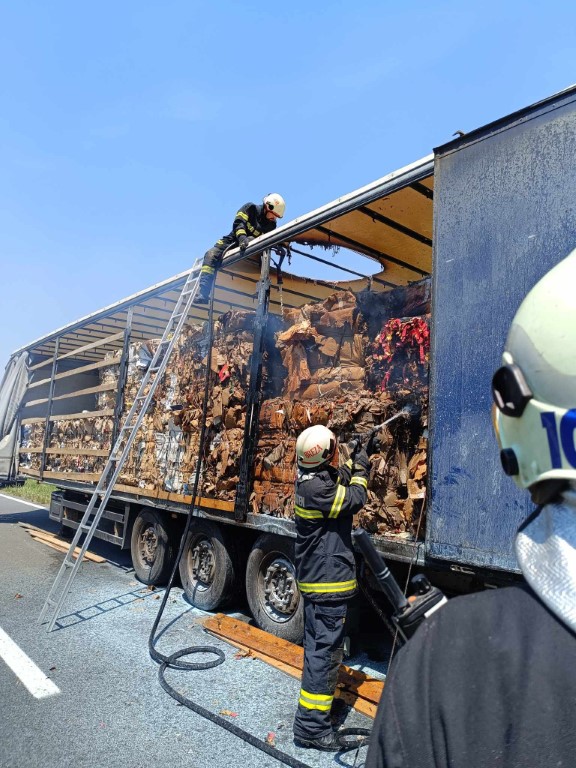 -Danas u 12:32 h dobivamo dojavu od Centra 112 da se radi o požaru kamiona s papirom na Valpovačkoj obilaznici (od Lidla prema Miholjcu). Na intervenciju u 12:33 h izlazimo s navalnim vozilom, autocisternom, kombi vozilom i šest vatrogasaca. Dolaskom na mjesto intervencije uočavamo da gori prešani papir u balama (1 bala cca 1 tonu).