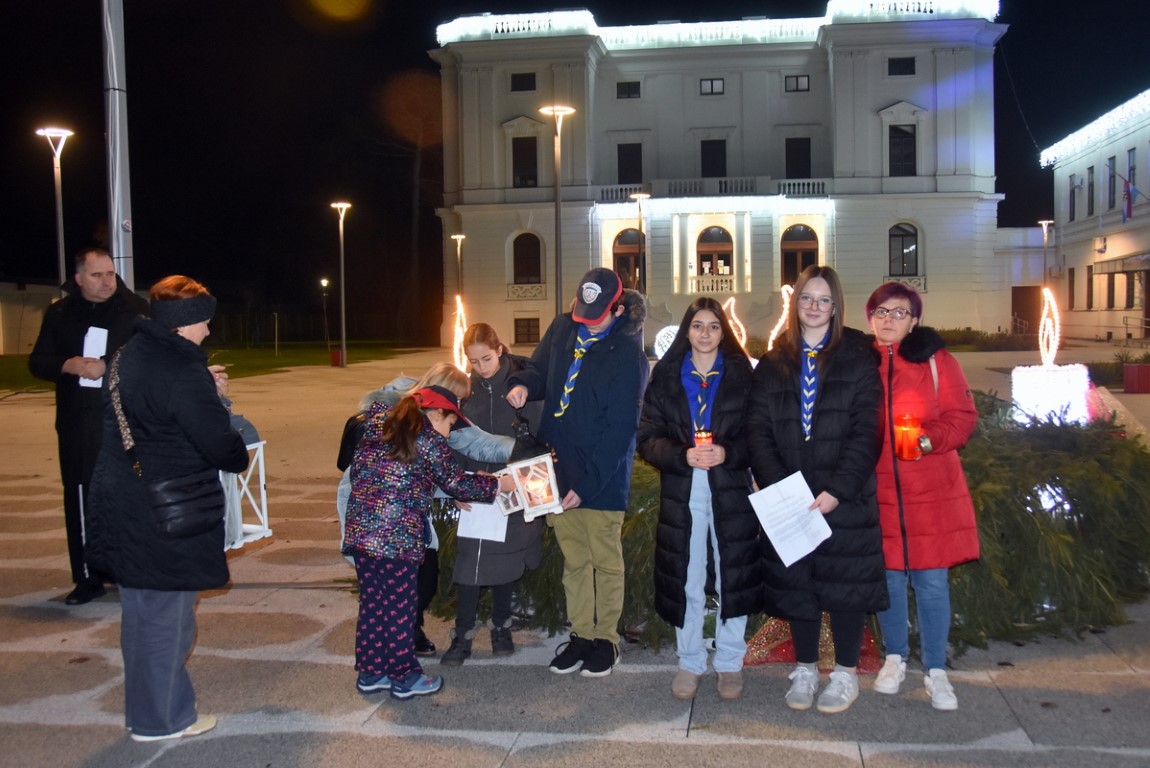 Uz prigodne poruke mira članovi Odreda izviđača Darko Tivanovac Valpovo, donijeli su Betlehemsko svijetlo mira te ga prenijeli zamjenici gradonačelnika Ljerki Vučković i građanima koji su ga ponijeli u svoje domove.