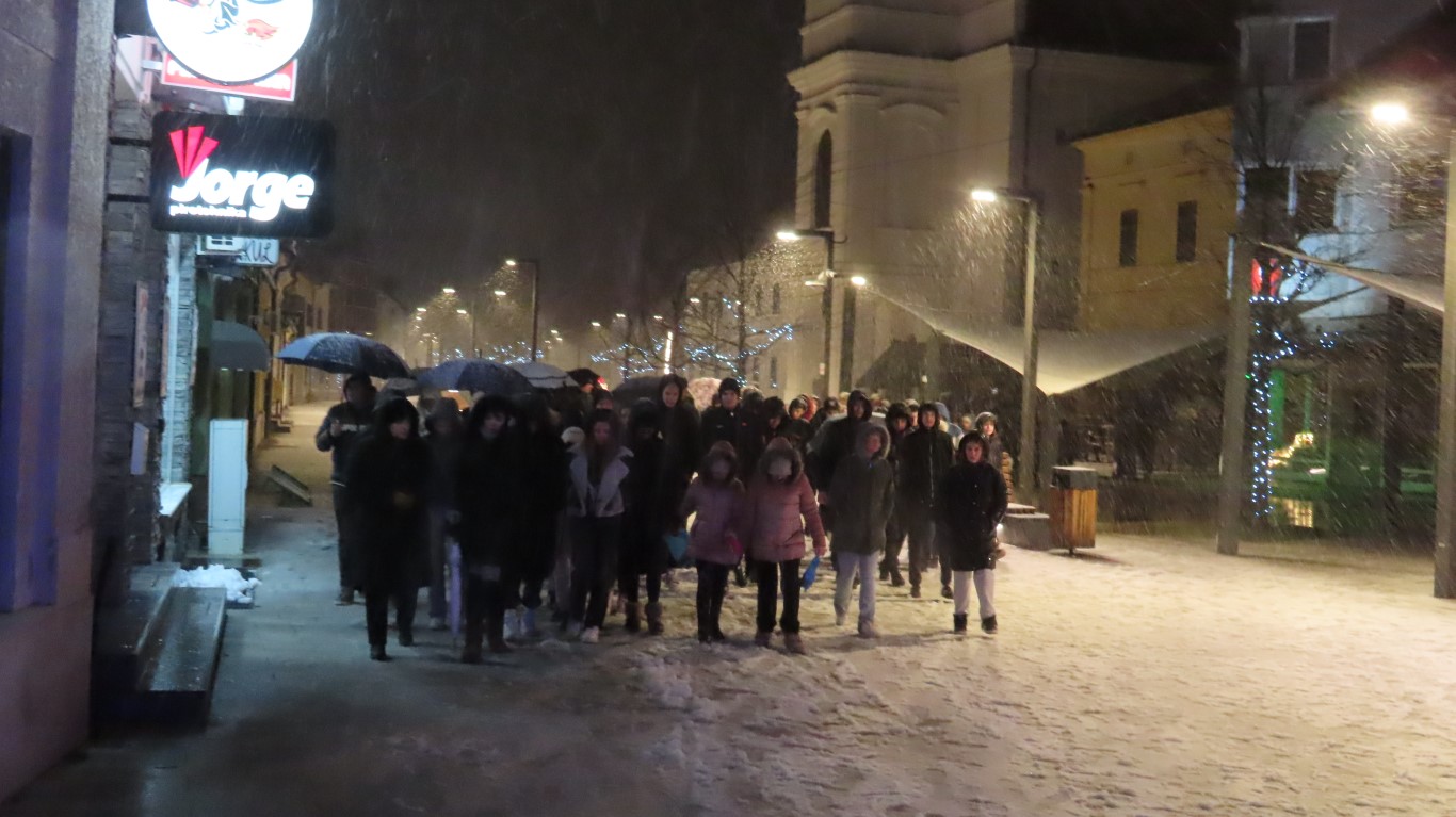 U mimohodu, kojeg su povele Katarina Sopek, predsjednica Savjeta Mladih te ravnateljica Srednje škole Svjetlana Kalpić sa suradnicima, rame uz rame, od Srednje škole, preko središnjeg trga do Osnovne škole, po hladnoj, snježnoj vijavici koračali su roditelji, bake, djedovi, profesori, učitelji, učenici, gradonačelnik Matko Šutalo sa suradnicima…