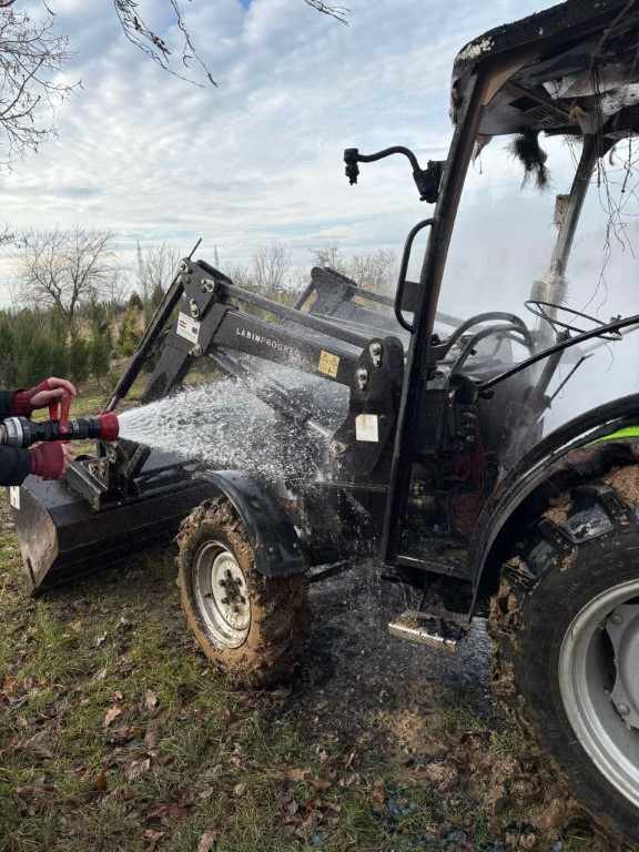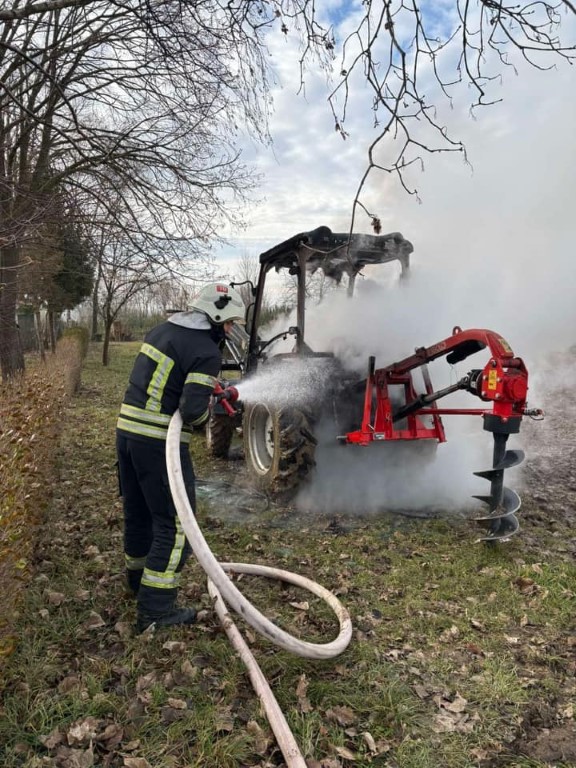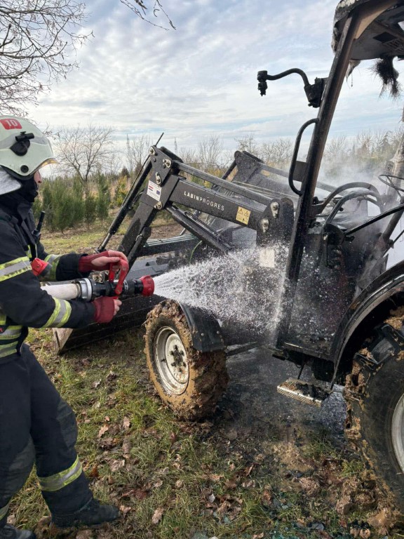 Kako su izvijestili, na intervenciju izlaze s navalnim vozilom, autocisternom i pet vatrogasaca. Dolaskom na mjesto intervencije utvrđuju da je djelatnik tvrtke ugasio požar na traktoru s tri protupožarna aparata.
