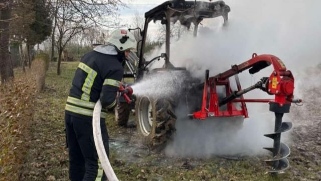 Naoko mirno dežurstvo prvi put je prekinuto u 9:40 kada im je iz Županijskog centra 112 dojavljeno da gori traktor na ekonomiji u Zelčinu.