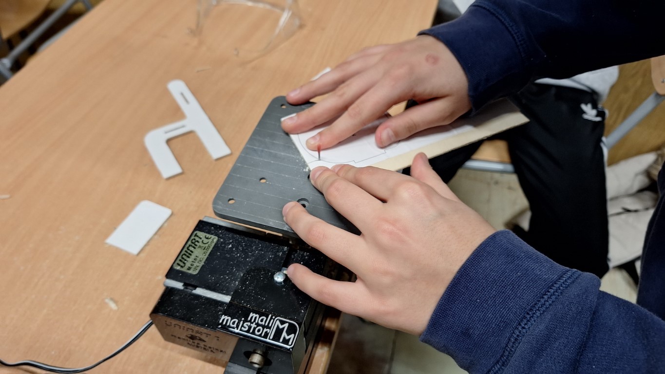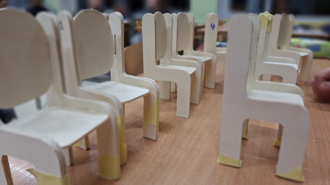 Učenici su u ovoj radionici radili na Unimat strojevima i izrezivali model stolice od 3 mm šperploče po isprintanom nacrtu na samoljepivom papiru. Ekipu čine dva učenika koji moraju što kvalitetnije obraditi materijal i spojiti ga u zadani model. Radovi su ocijenjeni na kraju svakog blok sata. Nakon svih održanih radionica ocjenjivačko povjerenstvo izabrati će najbolja dva rada koji će dvije ekipe iz svake škole odvesti na županijski nivo natjecanja.