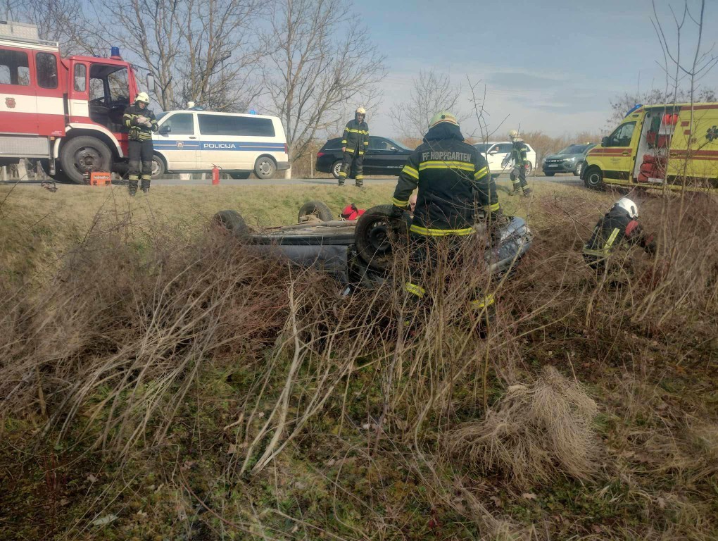 -Na intervenciju izlazimo s navalnim vozilom, pickupom i devet vatrogasaca. Dolaskom na mjesto intervencije sa djelatnicima Hitne medicinske pomoći izvlačimo ozlijeđenu žensku osobu, te ju nosimo do vozila HMP. Nakon što smo pomogli djelatnicima HMP, vršimo pregled vozila i otpajanje akumulatora, izvijestili s vatrogasci.