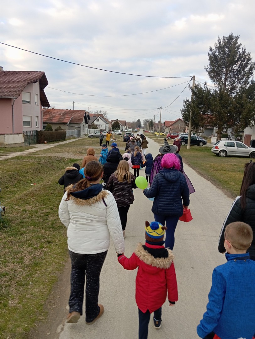 U veselom raspoloženju, punom plesa i smijeha te nakon zajednički odgledanog crtića, djeca, roditelji i članice Udruge prošetale su u karnevalskoj povorci Samatovcima te donijeli radost i veselje sumještanima.
