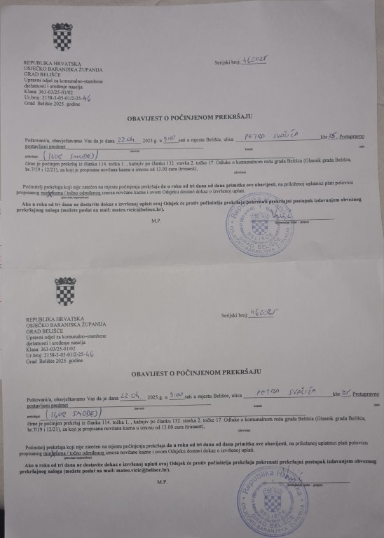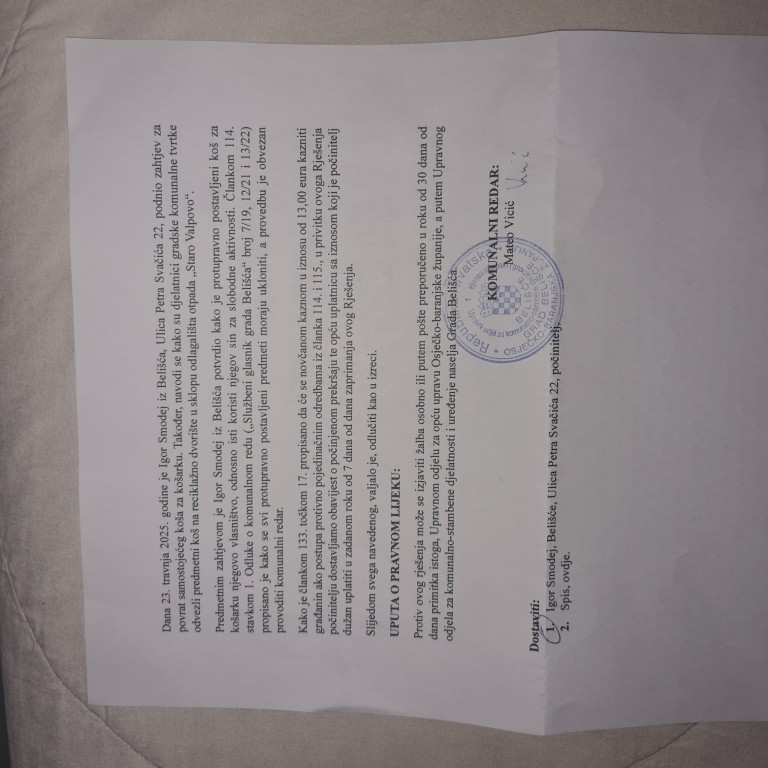 Ako podržavate i brinete za djecu Belišća kao što tvrdite, opozovite sramotno prekršajno postupanje i izrečene novčane kazne, ispričajte se u ime Gradske uprave na nerazumnom postupanju i kaznite sve one u Gradskoj upravi koji su doveli do ovoga sramotnog čina kažnjavanja građanina Belišća koji se brine da se djeca bave sportom.