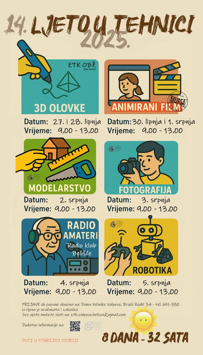 VALPOVO Zajednica tehničke kulture Valpovo-Belišće zbog velikog interesa djece i roditelja organizira tradicionalnu ljetnu manifestaciju za sve učenici koji želje dio praznika provesti u radionicama Centra tehničke kulture Valpovo-Belišće.