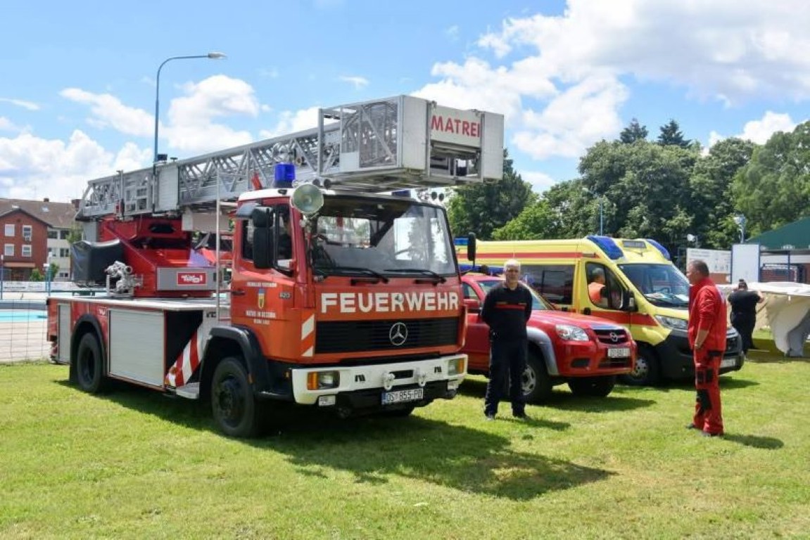 Program na bazenu obogaćen je prezentacijom rada i opreme Policijske postaje Belišće, Vatrogasne zajednice grada Belišća i naših lokalnih DVD-ova, Gradskog društva Crvenog križa Valpovo, Radio kluba Belišće. Prostor bazena posjetili su polaznici Dječjeg vrtića Maslačak koji su s velikim zanimanjem razgledali opremu i rad službi civilne zaštite.