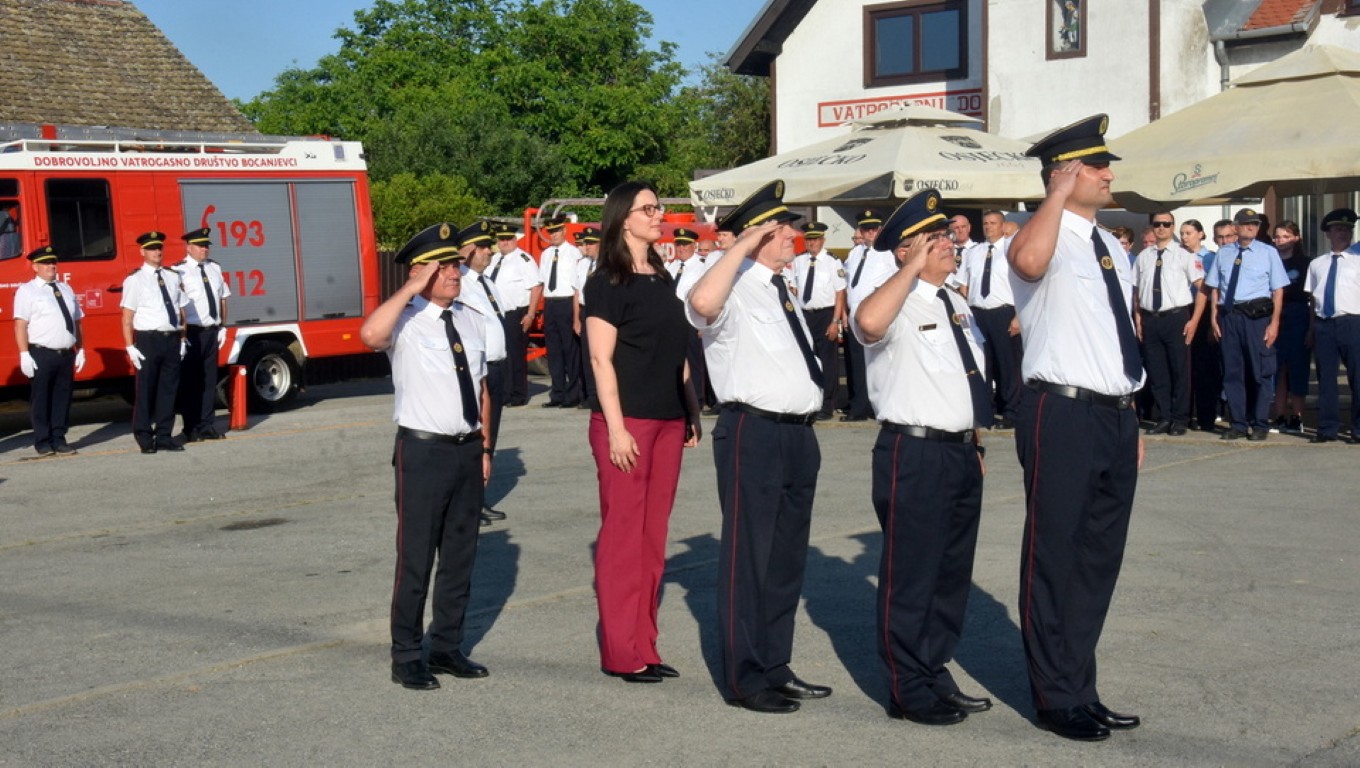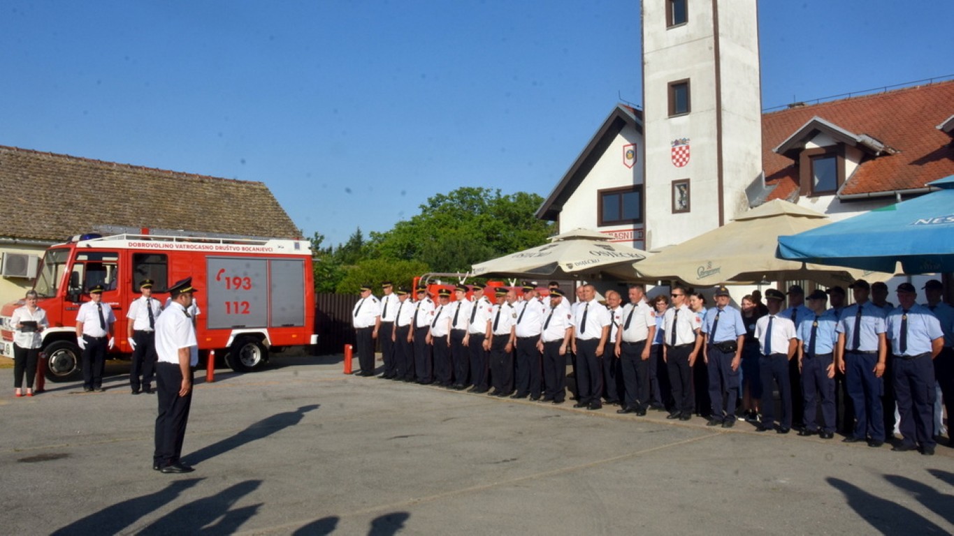 Svečanost je započela postrojavanjem okupljenih vatrogasaca i predajom prijavka zapovjednika DVD-a Bocanjevci Josipa Pavokovića zapovjedniku VZ OBŽ Zoranu Pakšecu, te himnom Republike Hrvatske i vatrogasnom himnom koju su izvele članice ŽVS Bocanjevčanke.