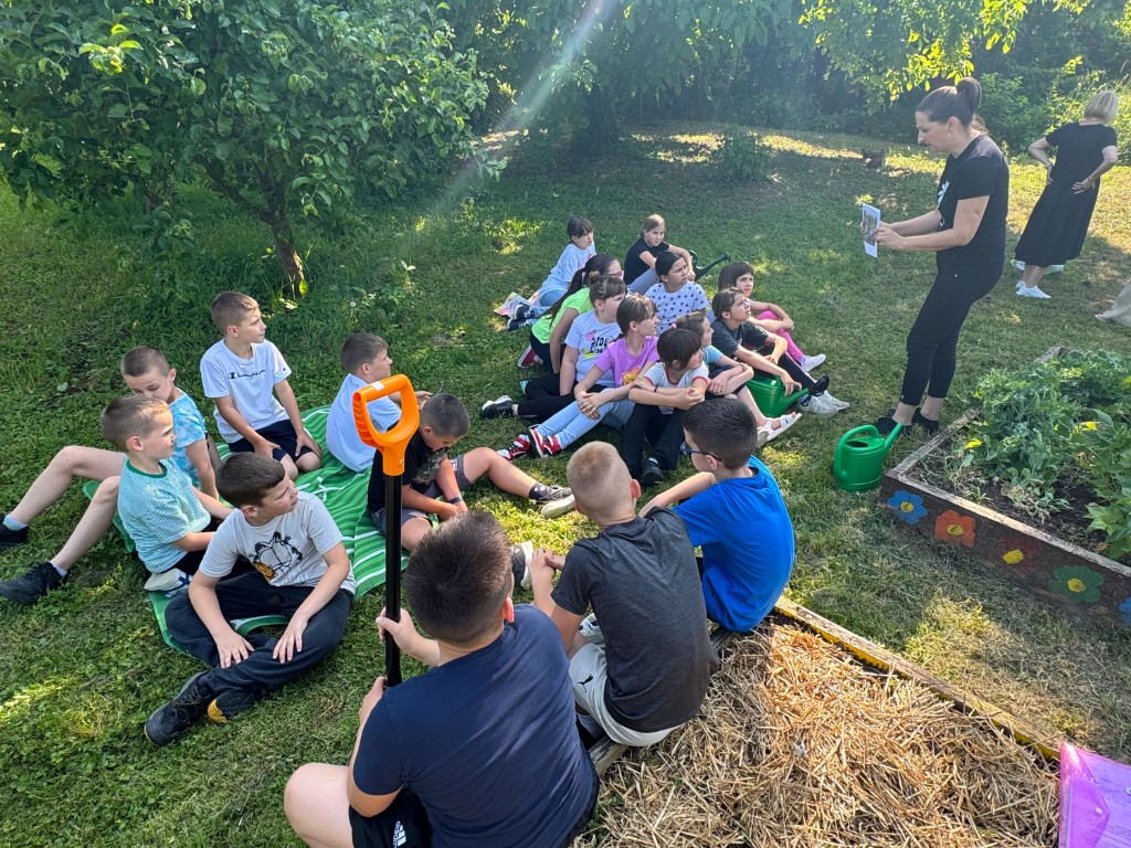 Tijekom radionice djeca su učila o visokim gredicama – ograđenim i uzdignutim vrtovima koji omogućuju lakši pristup biljkama, bolju drenažu i kontrolu tla, te su idealni za uzgoj povrća, začinskog bilja i cvijeća. Učenici su upoznati s osnovnim slojevima koji se slažu prilikom izrade gredice – od grančica i komposta do kvalitetne vrtne zemlje – te su sa zanimanjem promatrali kako izgleda pravilno složena visoka gredica, a neki su se i okušali u slojevitom punjenju.