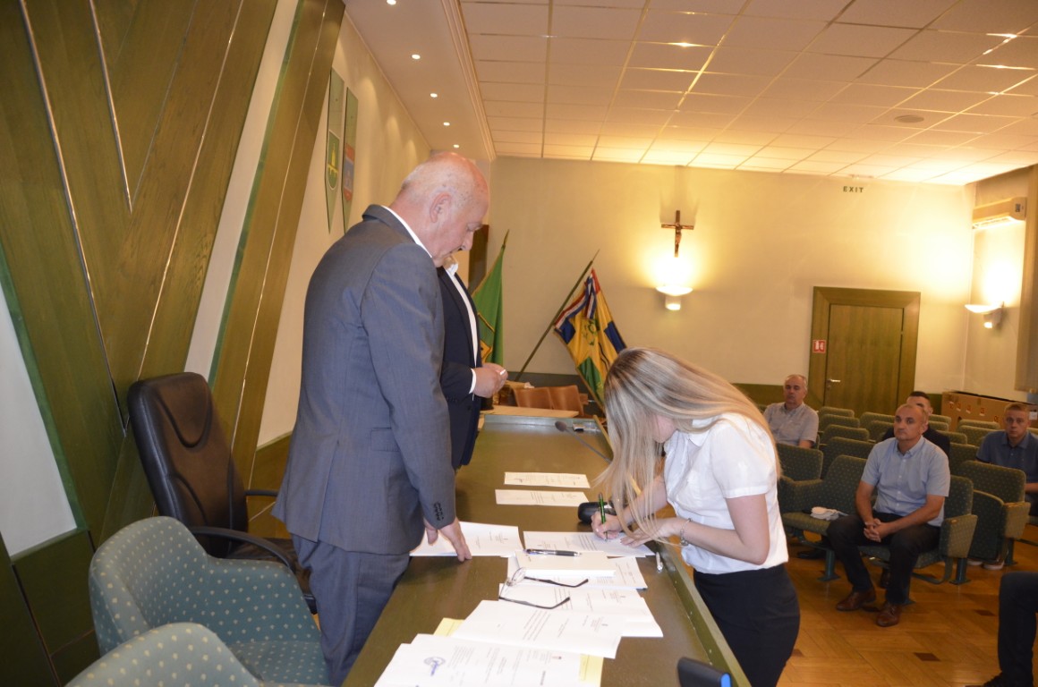 Prije početka obavljanja svoje dužnosti, nazočni vijećnici, Marijan Mandić, Igor Uranjek, Siniša Galovac, Željko Papić, Luna Ibrahimpašić, Blanka Gigić Karl, Željko Varžić, Dino Klobučar, Filip Ivanović i Alenko Bajer prisegli su i potpisali svečanu prisegu. U Nastavku sjednice izabrani su predsjednik i članovi radnih tijela Gradskog vijeća.