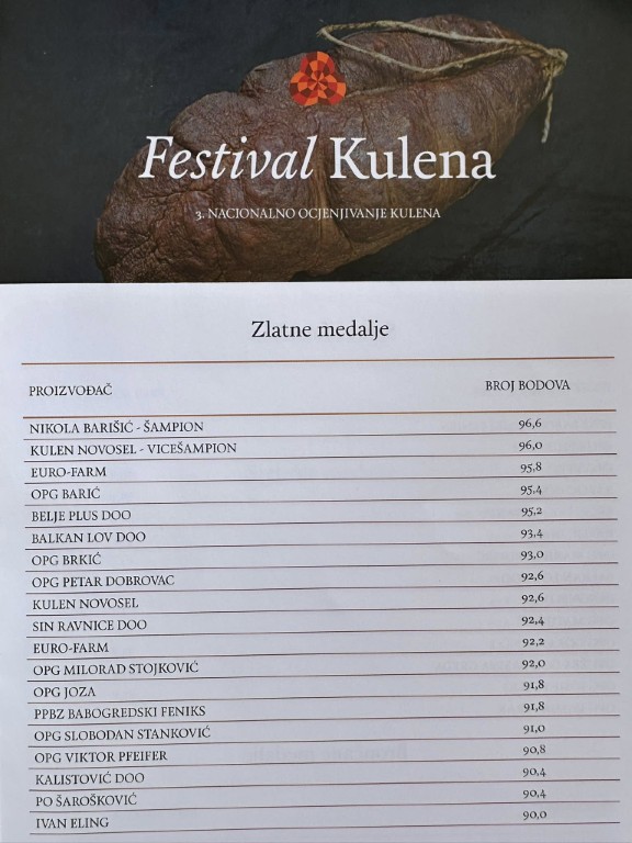 BRANJIN VRH U Kući Baranjskog kulena u Branjinu Vrhu jučer je održan 3. Festival kulena i dodjeljivanje nagrada i priznanja najuspješnijim proizvođačima kulena.