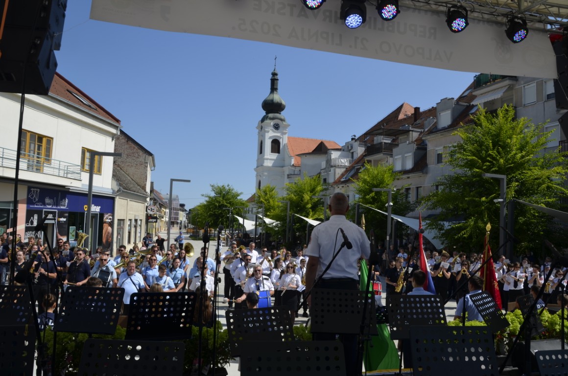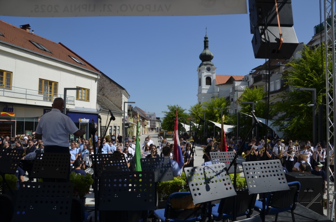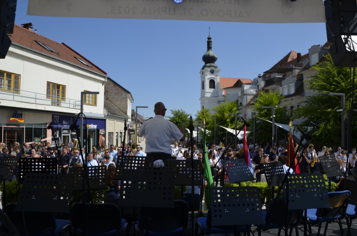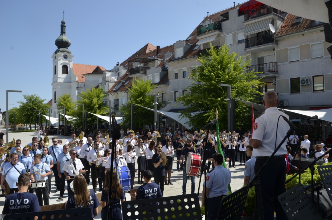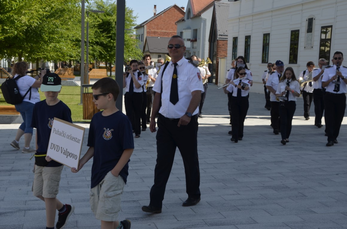 Spektakularnom koncertu na središnjem trgu prethodio je mimohod glazbenika ulicama Valpova, a potom su orkestri, sudionici susreta zajednički izveli državnu i vagtrogasnu himnu te koračnicu Slavonac.