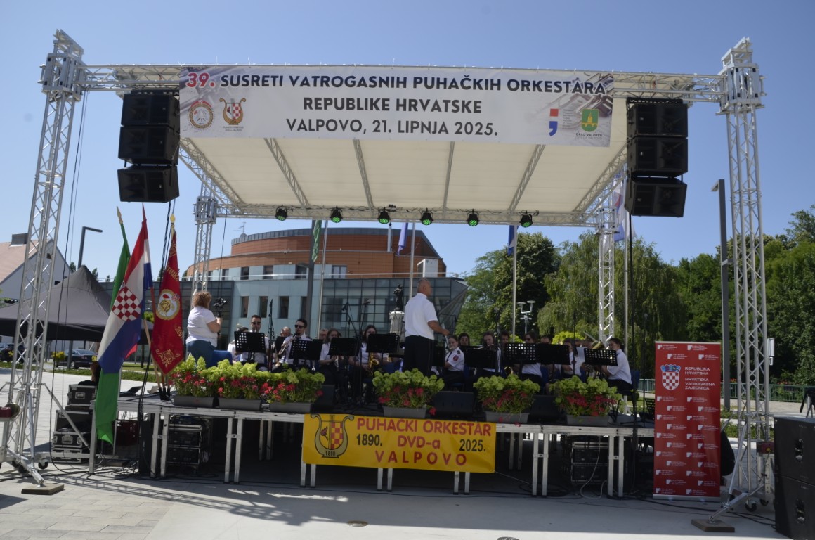 VALPOVO Na središnjem gradskom trgu danas je održan 39. susret vatrogasnih puhačkih orkestara Hrvatska.