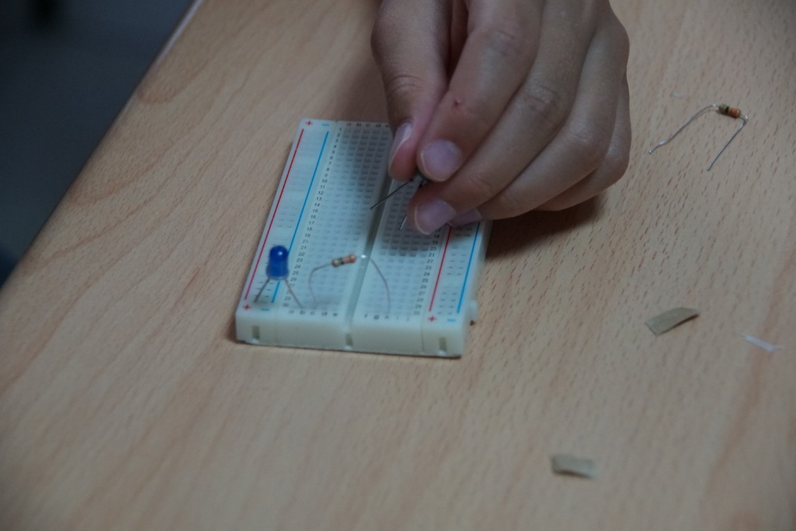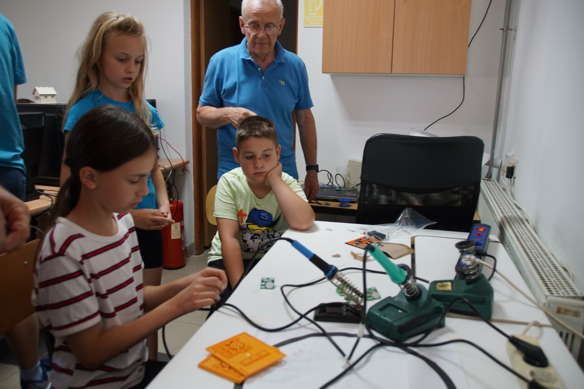 Radionicu su vodili mentori Marijan Antolović, Goran Dojkić i Dragan Francuz, koji su djeci s puno strpljenja i entuzijazma predstavili rad s laserskim rezačem te tehniku lemljenja elektroničkih komponenti. Sudionici su imali priliku sastaviti kućicu od šperploče izrezanu pomoću laserskog rezača, upoznati se s osnovama elektronike, te vlastoručno lemiti diodu na tiskanim pločicama. Gotovu tiskanu pločicu stavili su u kućicu koja je sada bila osvijetljena.