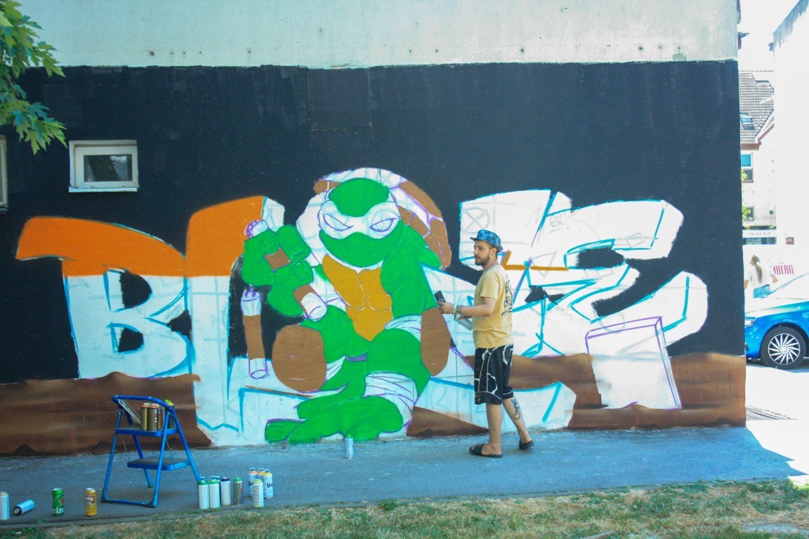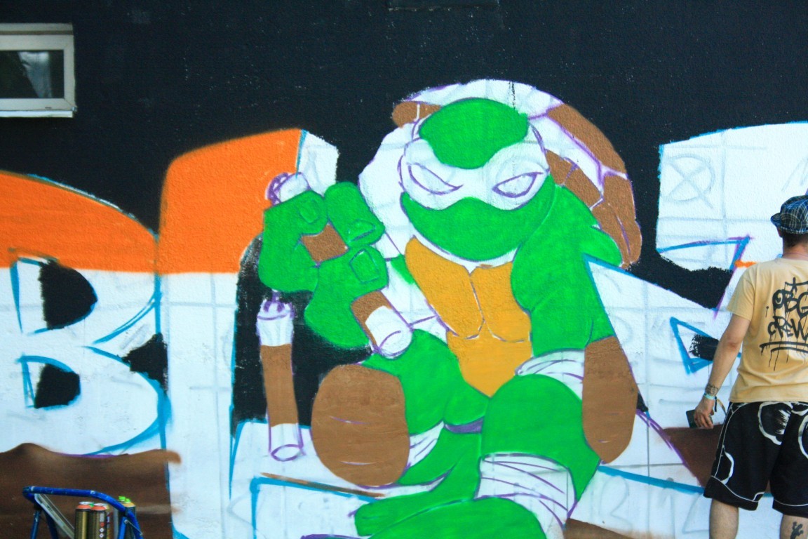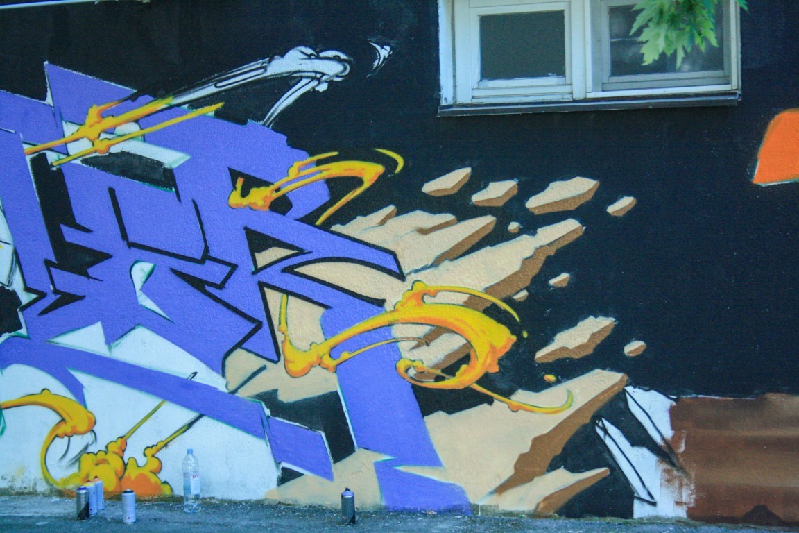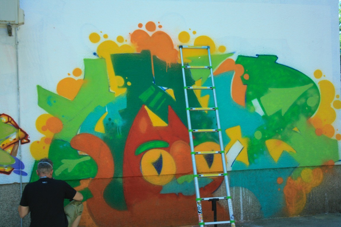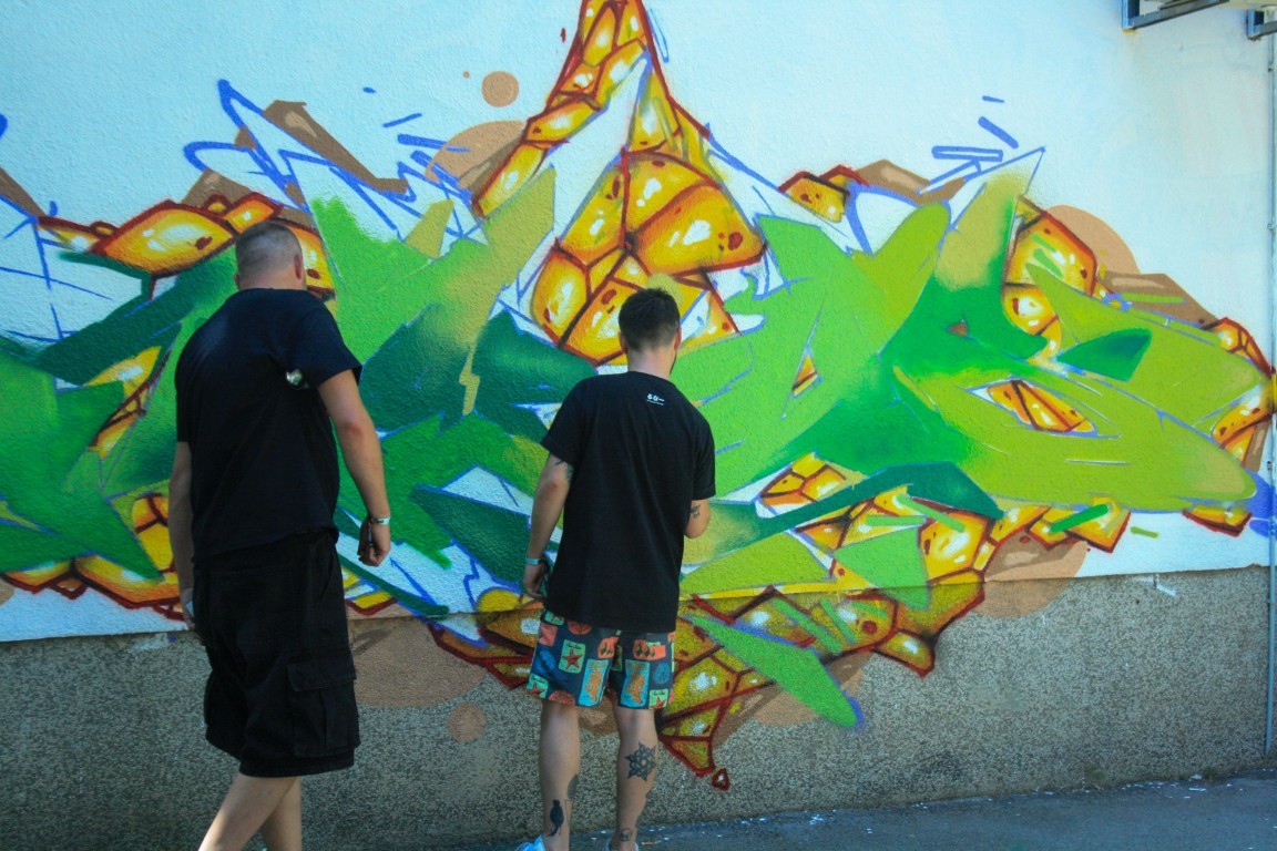 Grafiterima nije smetala niti vrućina te su vrijedno radili. Jedan od umjetnika, Alen koji dolazi iz Kutine rekao je nešto o svom graffitu; „Poanta je da uljepšamo prostor, a mi se ovdje igramo sa slovima. Ta slova su nečitljiva u oku promatrača.“. Kaže kako prolaznici rado dolaze i komentiraju njihov rad; „Mislim da im se sviđa to što radimo“. Filip iz Osijeka tvrdi kako njegova umjetnost nastaje spontano; „Cilj je uživanje u stvaranju, ne radim prema skici. Djelo nastaju u trenutku kada nastaje, a to su čari spontanosti i inspiracije.“. Kaže kako je važno educirati i djecu o ovoj grani umjetnosti; „Svako dijete se želi izraziti na neki način, umjesto da piše neke političke ili uvredljive poruke može se educirati i izraziti svoj stil.“