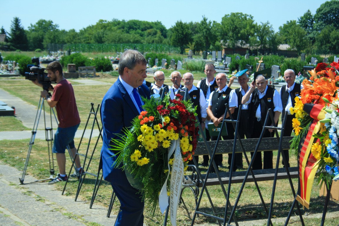 Program komemoracije započeo je polaganjem vijenaca žrtvama logora za Nijemce na gradskom groblju u Valpovu. Odali su pošast stradalima, a prigodan govor održao je predsjednik Njemačke zajednice, Vladimir Ham.
