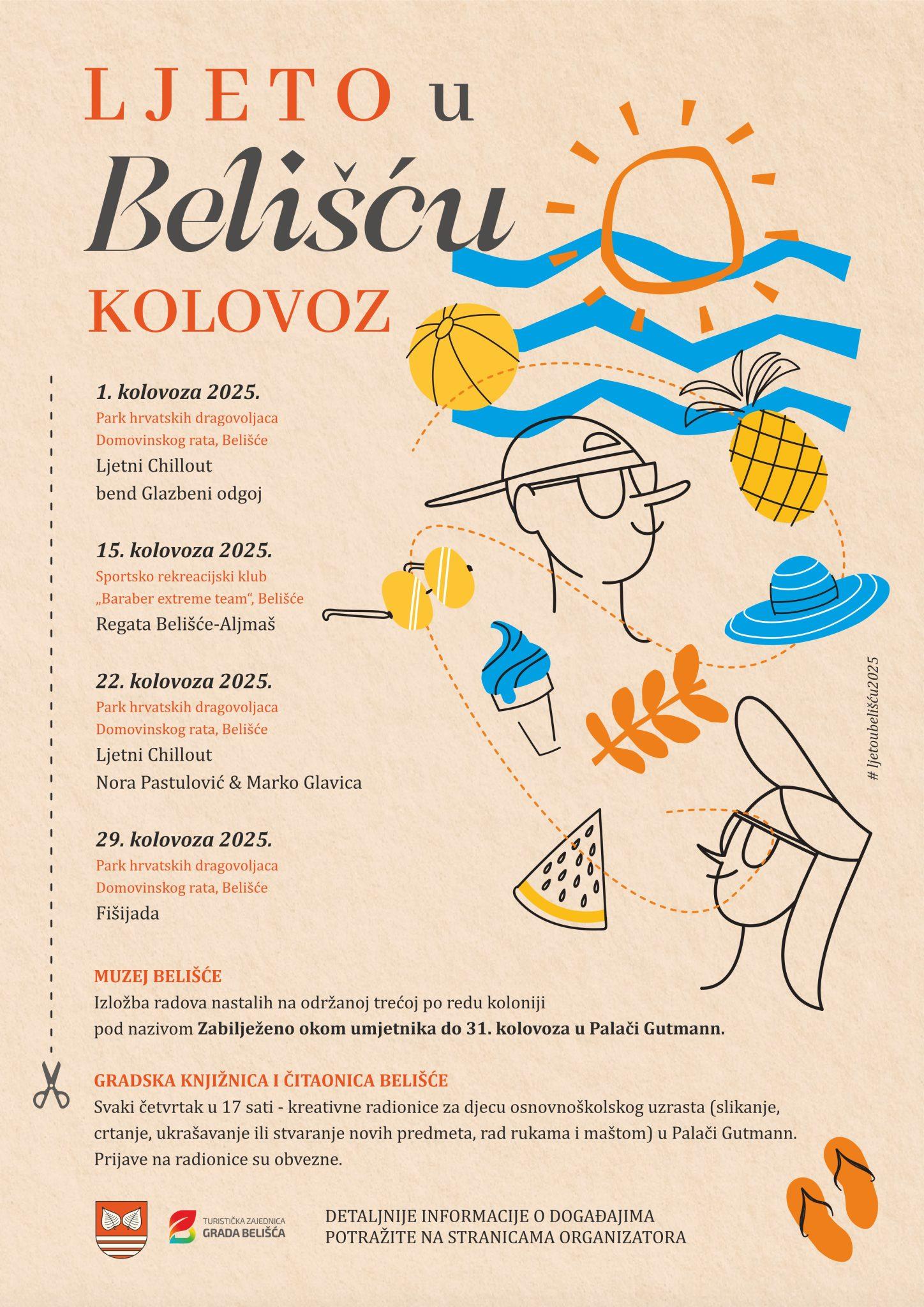 BELIŠĆE Nakon srpnja i kolovoz donosi zanimljiv program za sve generacije koji uključuje glazbene večeri pod zvijezdama, kreativne radionice i izložbe, sportske aktivnosti i natjecanje u kuhanju fiš paprikaša.