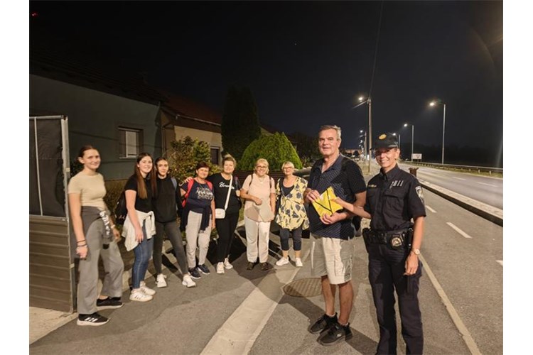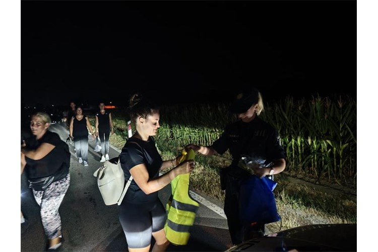 Policijski službenici PU osječko-baranjske dijelili hodočasnicima reflektirajuće prsluke i navlake za ruksake i torbe.
