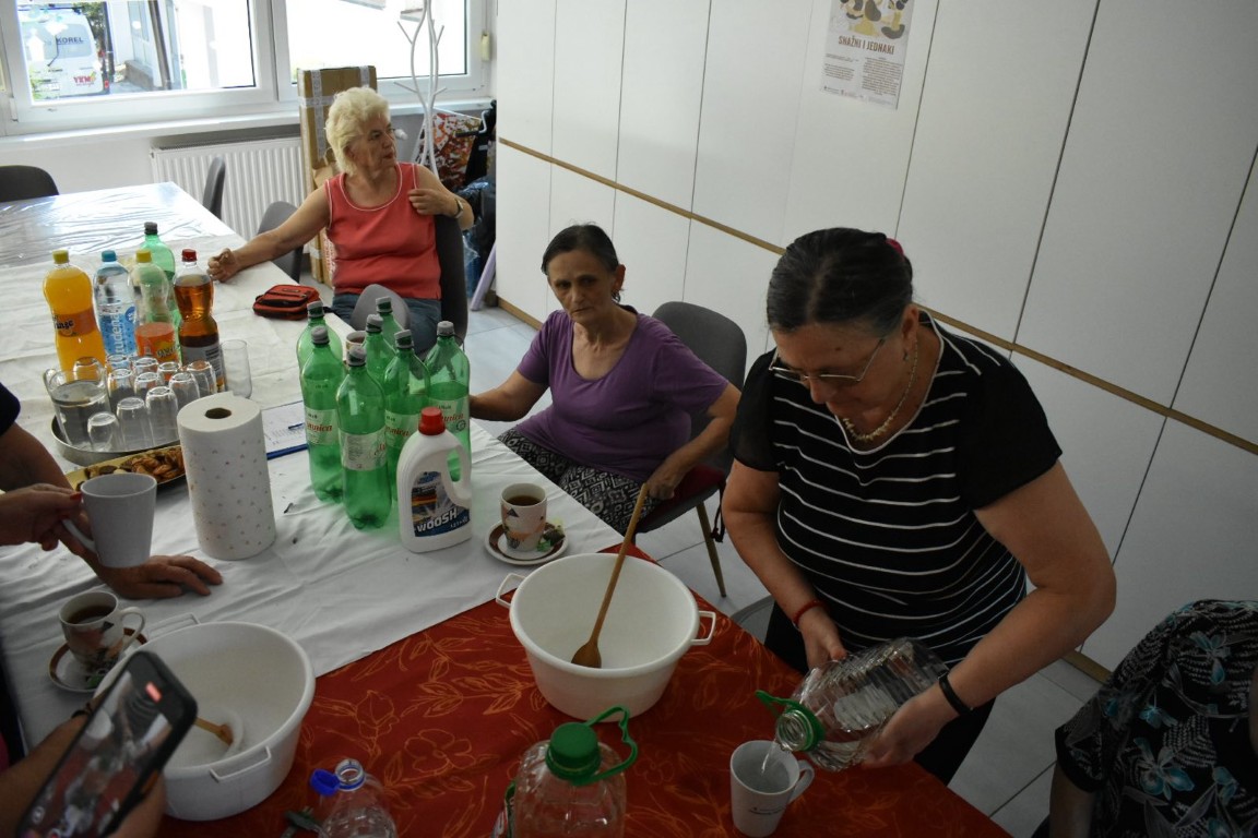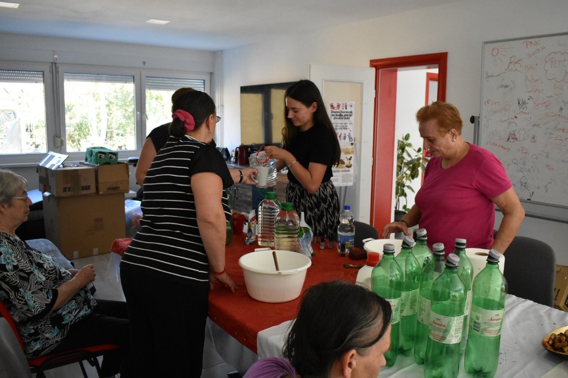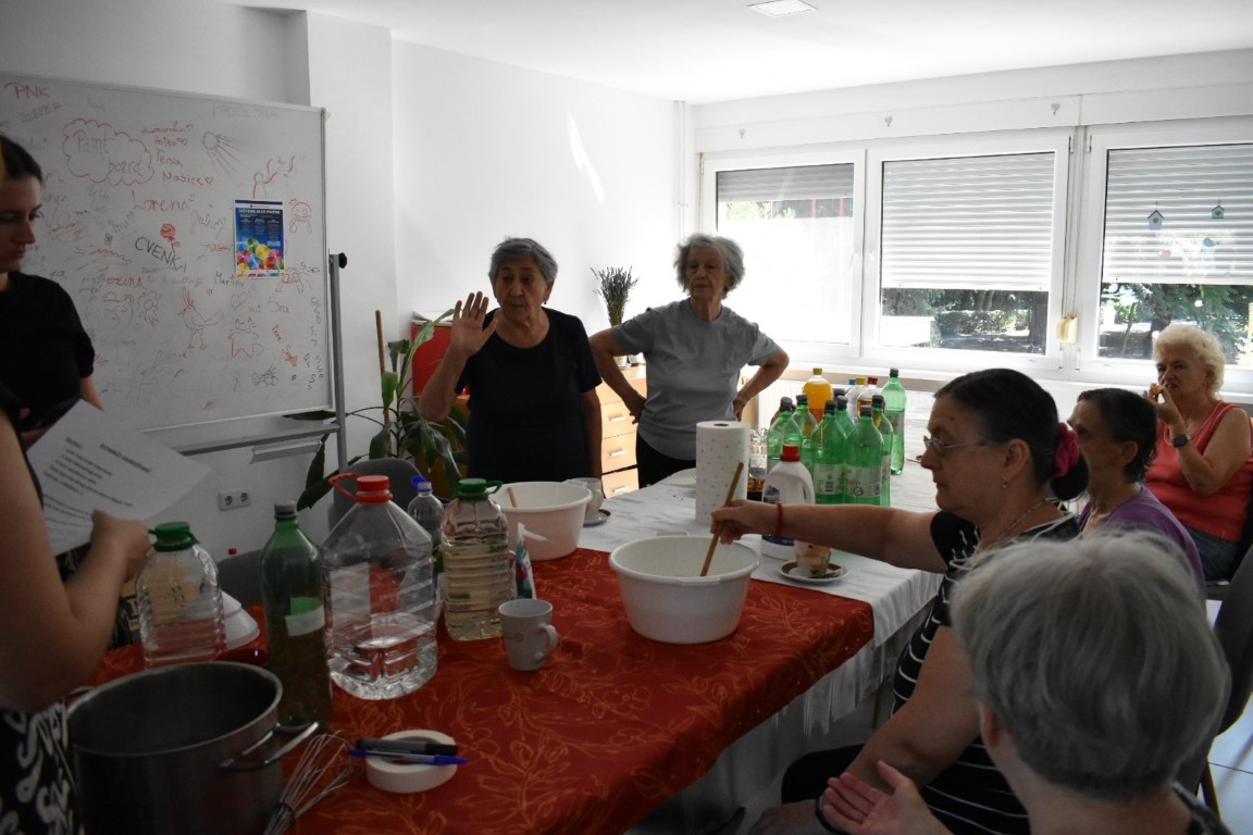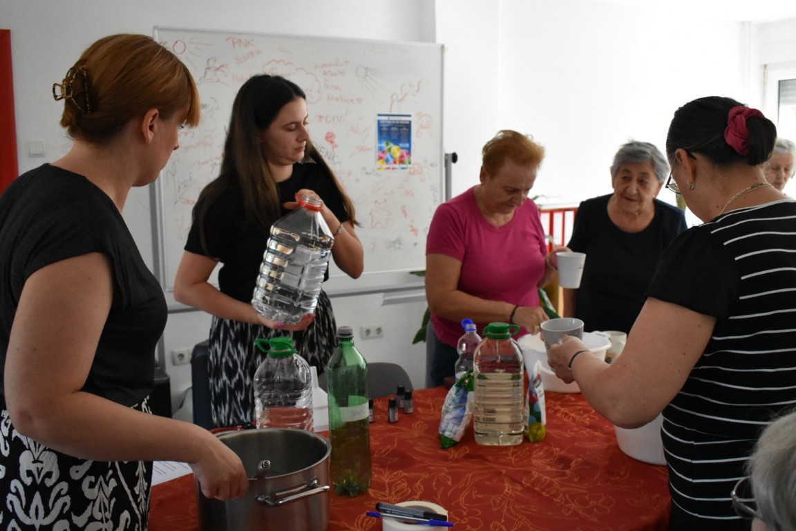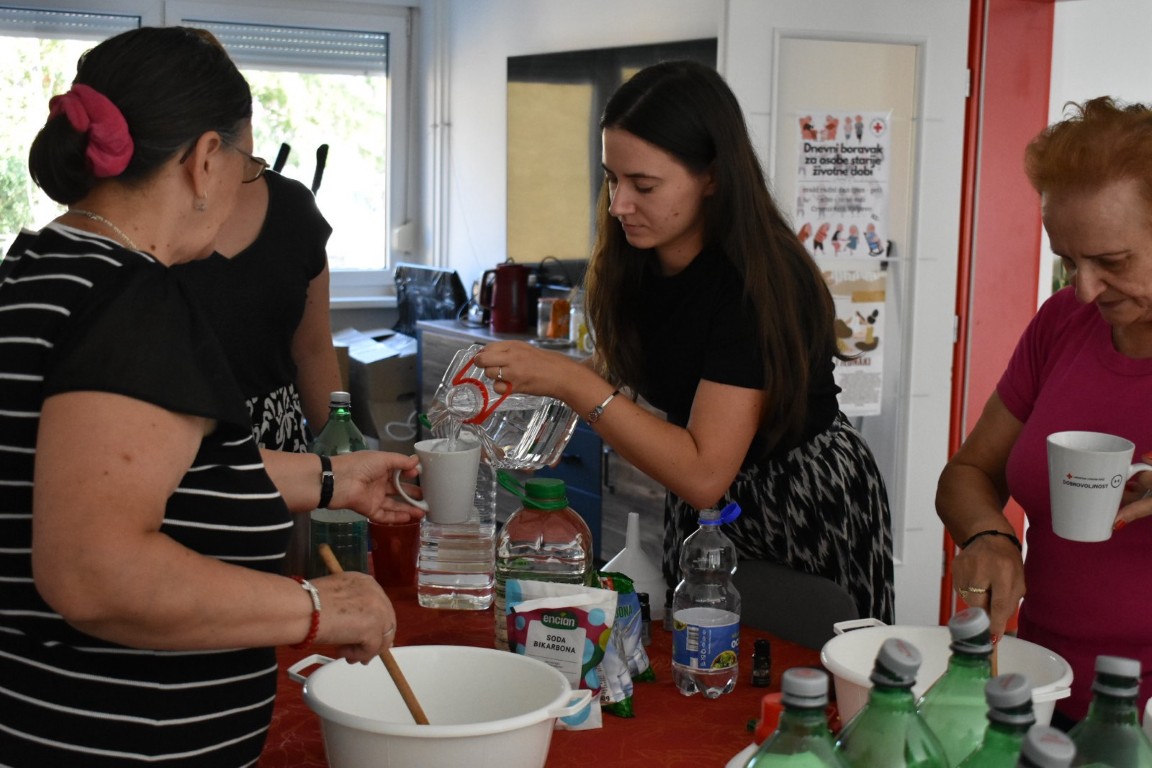 Radionica izrade prirodnog omekšivača za rublje zainteresirala je korisnike starije životne dobi u društvu mladih volontera koji su proces izrade fotografirali te će kasnije obraditi u video isječak.