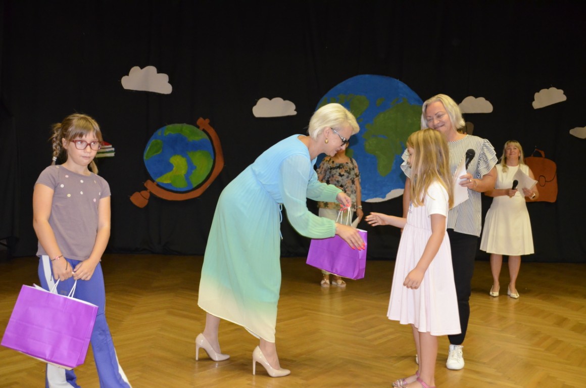 Po završetku programa, kroz kojeg su vodili Elena Santl i Šimun Kasum, prvašići su upoznali svoje razrednice, Vanju Bošnjak, Ivanu Andrić Pejak i Stelu Horvat, a iz ruku ravnateljice primili prigodne darove i tako postali učenicima Ia, Ib i Ic razreda Osnovne škole Matije Petra Katančića u Valpovu.