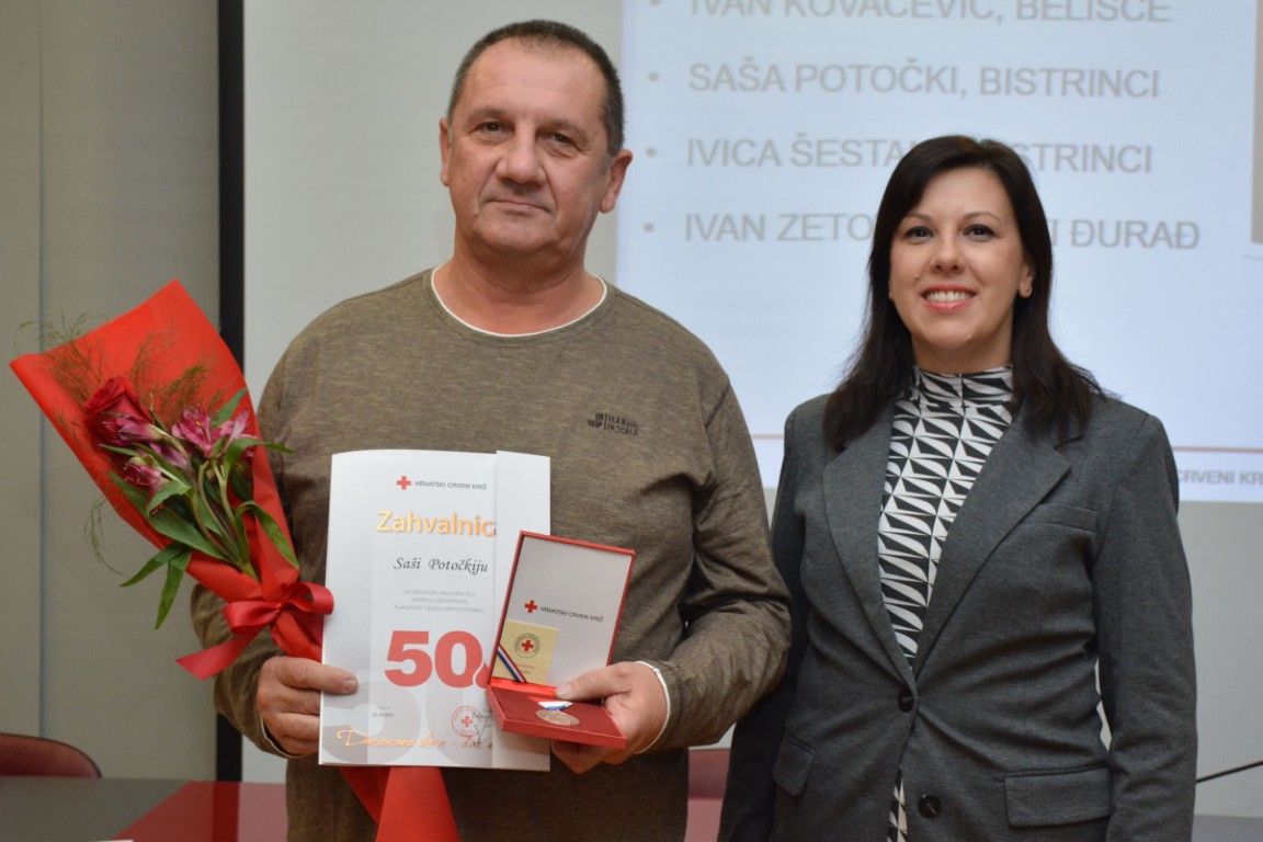 U nastavku sjednice zahvalnicu i brončani znak priznanja Hrvatskog Crvenog križa za 50 puta darovanu krv primili su DINO ANUŠIĆ, BELIŠĆE, (50 DAVANJA), DUBRAVKO ARNAUT, BELIŠĆE (52 DAVANJA). VLADO ČORKOVIĆ, GAT (50 DAVANJA), DEJAN HEĐA, BELIŠĆE (53 DAVANJA), IVAN KOVAČEVIĆ, BELIŠĆE (51 DAVANJA), DARKO MAJDENIĆ, ČRNKOVCI (67 DAVANJA), SAŠA POTOČKI, BISTRINCI (50 DAVANJA), IVICA ŠESTANJ, BISTRINCI (50 DAVANJA), IVAN ZETOVIĆ, SVETI ĐURAĐ (50 DAVANJA),