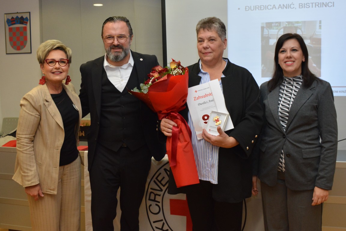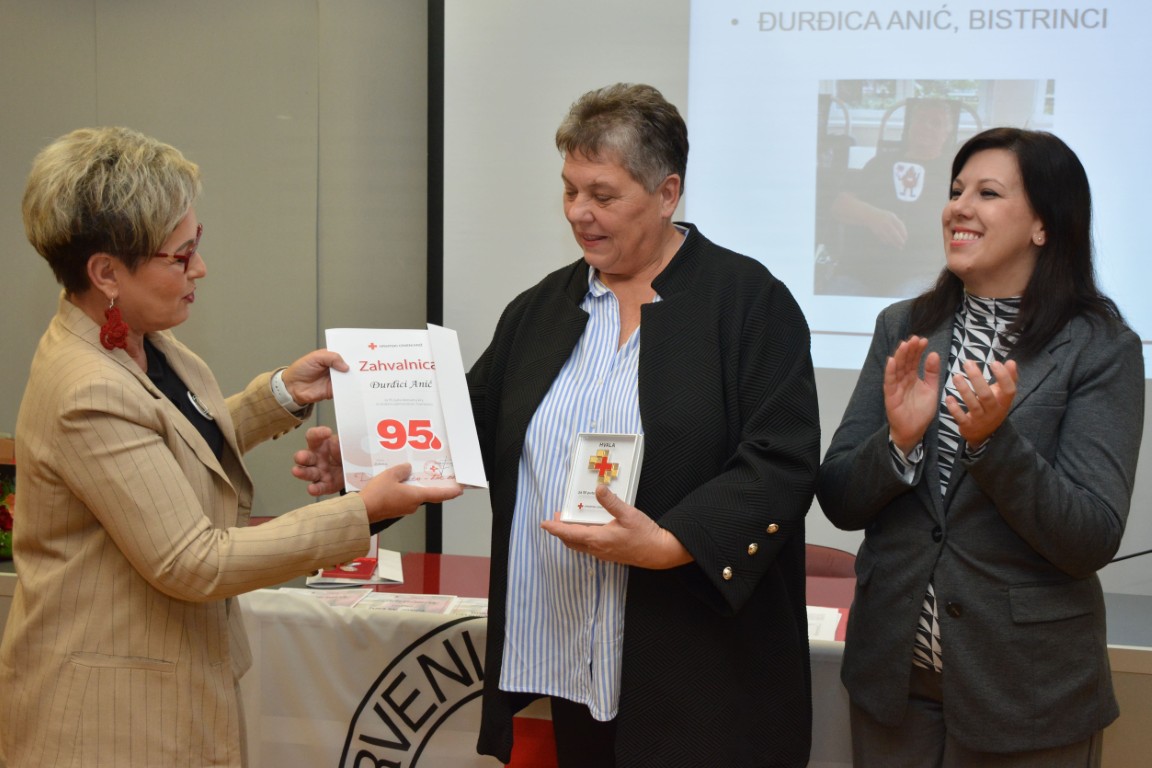zahvalnicu i plaketu Hrvatskog Crvenog križa za izvanredan uspjeh - 95 puta darovanu krv ĐURĐICA ANIĆ, BISTRINCI (100 DAVANJA),