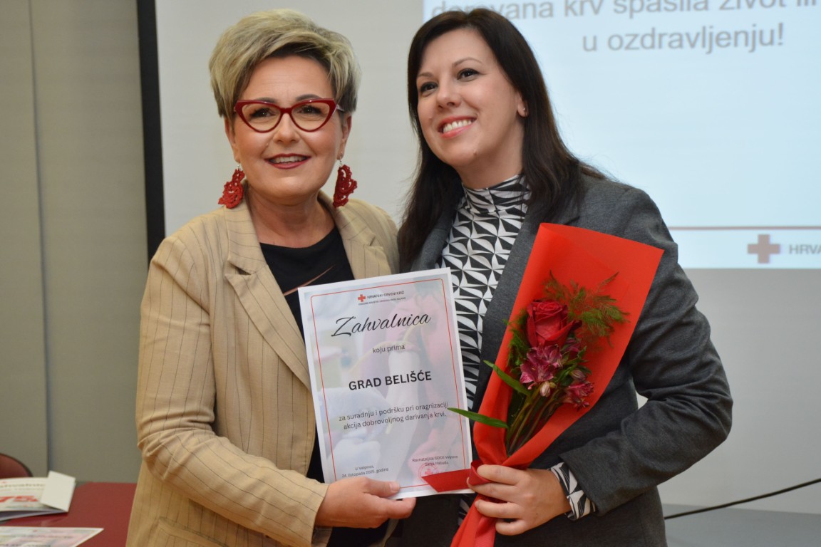 Gradsko društvo Crvenog križa Valpovo, prigodne zahvalnice dodijelilo je i Gradu Belišću i Dobrovoljnim vatrogasnom društvu Belišće za dugogodišnju suradnju i podršku u organiziranju redovitih akcija dobrovoljnog darivanja krvi svakog prvog petka u mjesecu, a svečanost je završena zajedničkim druženjem sudionika, prigodnim domjenkom i fotografiranjem laureata.