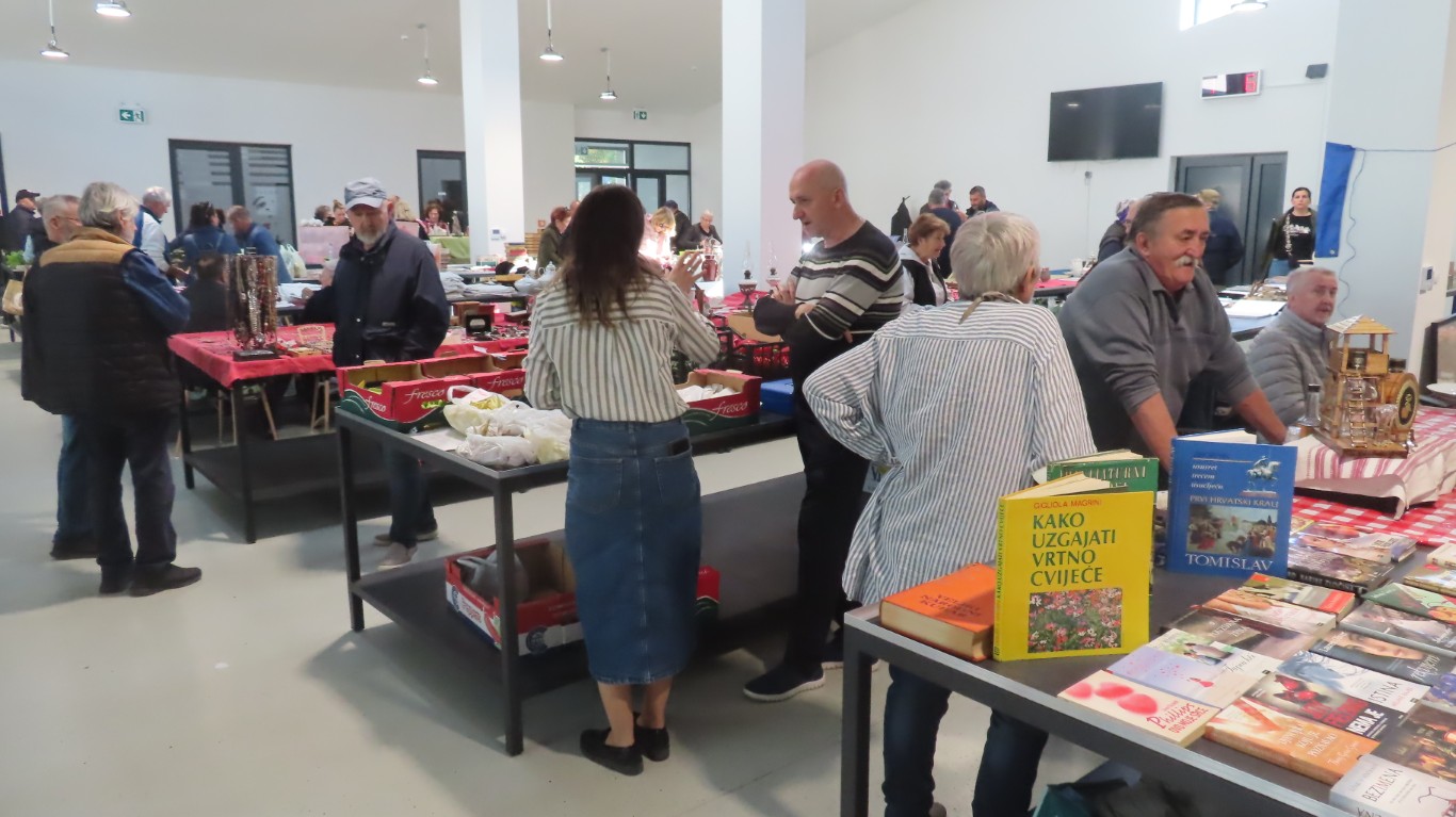 Sunčano, ali prohladno subotnje prijepodne pružilo je u Agroparku primjerene uvjete za ugodnu šetnju među štandovima na kojima se nudio bogat izbor od sezonskog povrća, cvijeća i zimnice do klasične ponude antikviteta – ukrasnih sitnica, knjiga, gramofonskih ploča, starih kovanica i novčanica, alata, pribora, rukotvorina, posuđa…