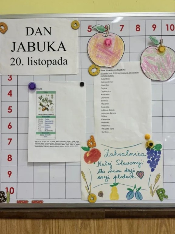 Jabuka je jedno od najpoznatijih i najzdravijih voća na svijetu, a ovaj dan podsjeća nas na važnost zdrave prehrane, očuvanje domaćih voćnjaka i uživanje u plodovima jeseni. Tako su učenici nižih razreda Osnovne škole Matije Petra Katančića u Valpovu ovom prigodom saznali kako širom svijeta postoji više od 7500 vrsta jabuka.