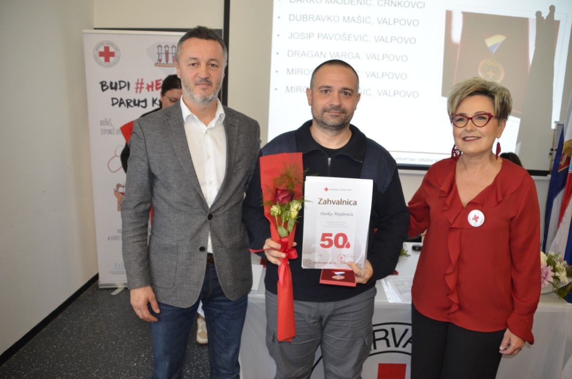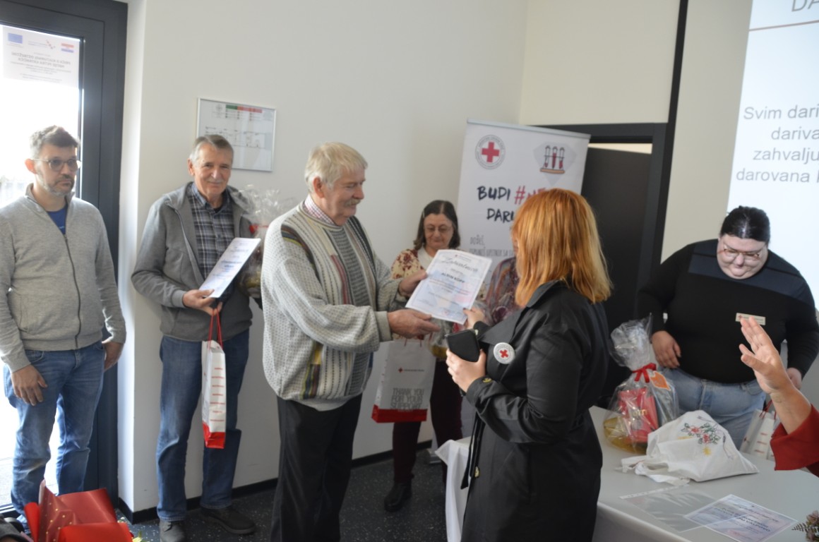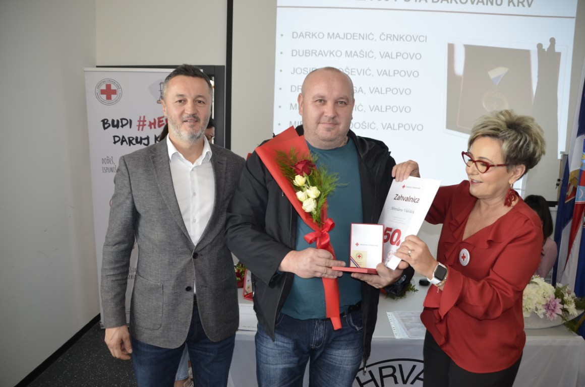 Nakon emotivnog uvoda i čestitki pristupilo se uručenju zahvalnica, pa su zahvalnicu i brončani znak priznanja Hrvatskog crvenog križa za 50 puta darovanu krv primili DARKO MAJDENIĆ, ČRNKOVCI, DUBRAVKO MAŠIĆ, JOSIP PAVOŠEVIĆ, DRAGAN VARGA, MIROSLAV VICIĆ, i MIROSLAV VIDOŠIĆ, zahvalnicu i srebrni znak priznanja Hrvatskog crvenog križa za 75 puta darovanu krv MARIO JUKIĆ, a zahvalnicu i zlatni znak priznanja Hrvatskog crvenog križa za 100 puta darovanu krv ŽELJKO GEBAJ, svi iz Valpova.