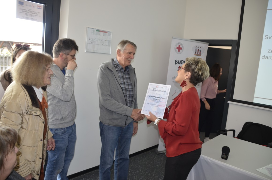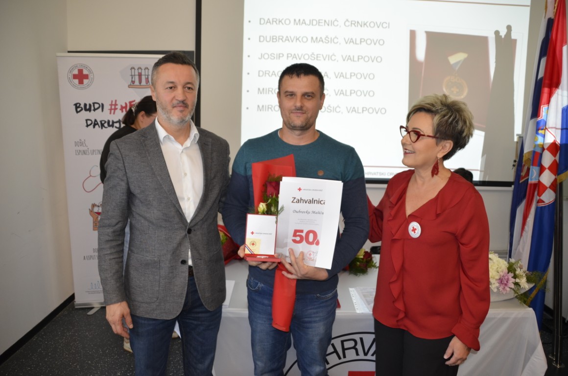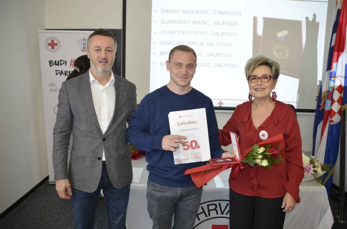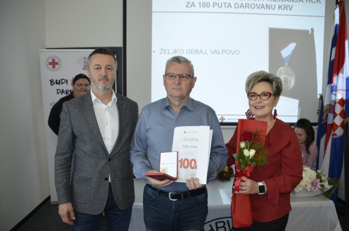 Nakon emotivnog uvoda i čestitki pristupilo se uručenju zahvalnica, pa su zahvalnicu i brončani znak priznanja Hrvatskog crvenog križa za 50 puta darovanu krv primili DARKO MAJDENIĆ, ČRNKOVCI, DUBRAVKO MAŠIĆ, JOSIP PAVOŠEVIĆ, DRAGAN VARGA, MIROSLAV VICIĆ, i MIROSLAV VIDOŠIĆ, zahvalnicu i srebrni znak priznanja Hrvatskog crvenog križa za 75 puta darovanu krv MARIO JUKIĆ, a zahvalnicu i zlatni znak priznanja Hrvatskog crvenog križa za 100 puta darovanu krv ŽELJKO GEBAJ, svi iz Valpova.
