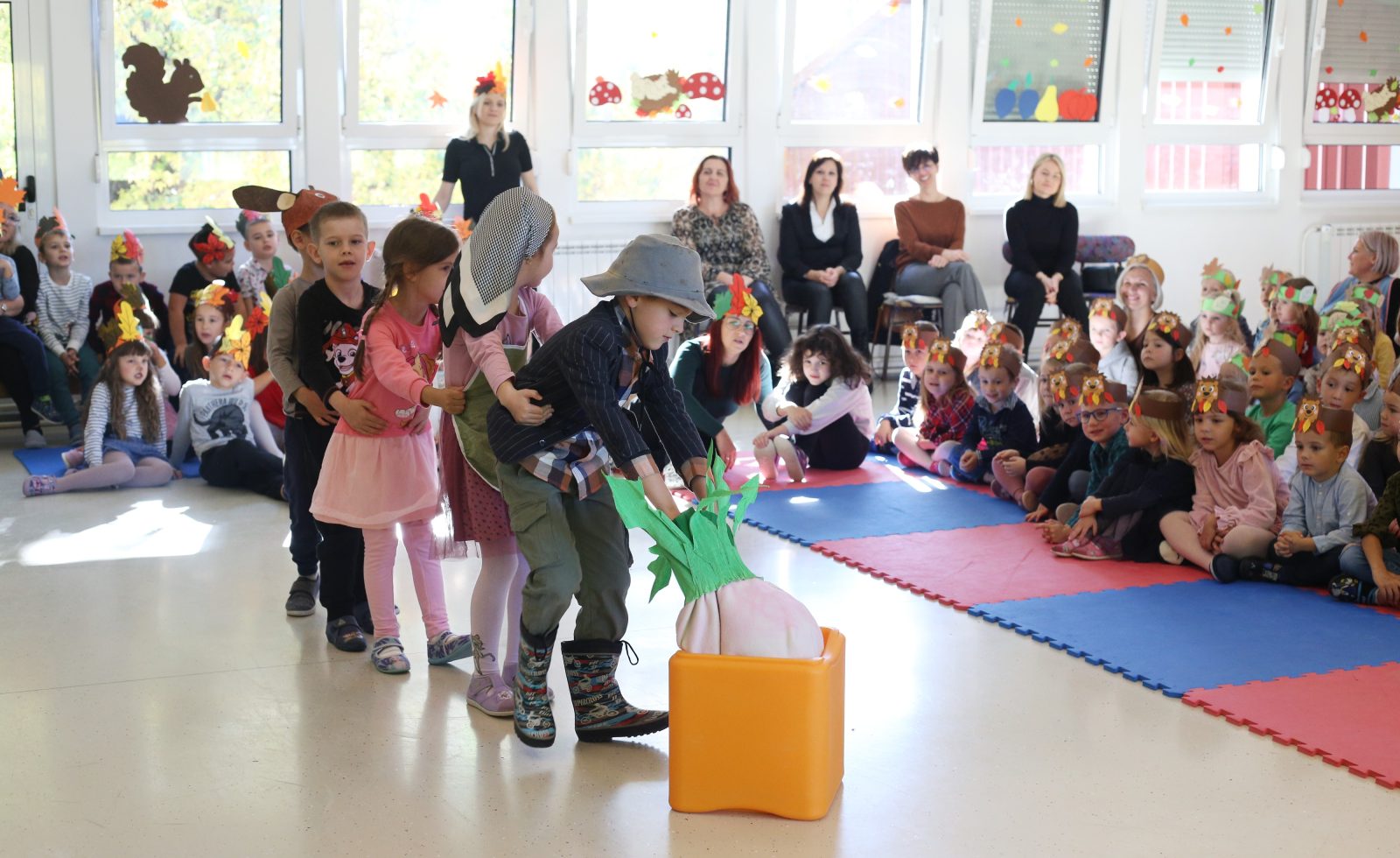 Tijekom programa, djeca su kroz pjesmu i igru čak dozvala i tetu Jesenku, unoseći u dvoranu puno smijeha, boja i radosti.