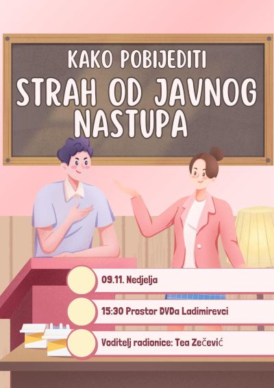 LADIMIREVCI Znoje vam se dlanovi pri samoj pomisli na mikrofon? Glas zadrhti čim vas netko pogleda dok govorite? Niste jedini! No, imamo sjajnu vijest — strah od javnog nastupa može se pobijediti!