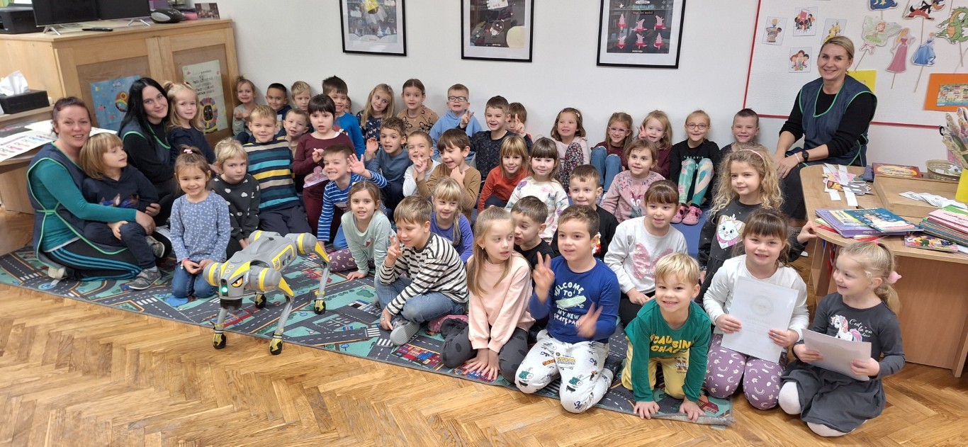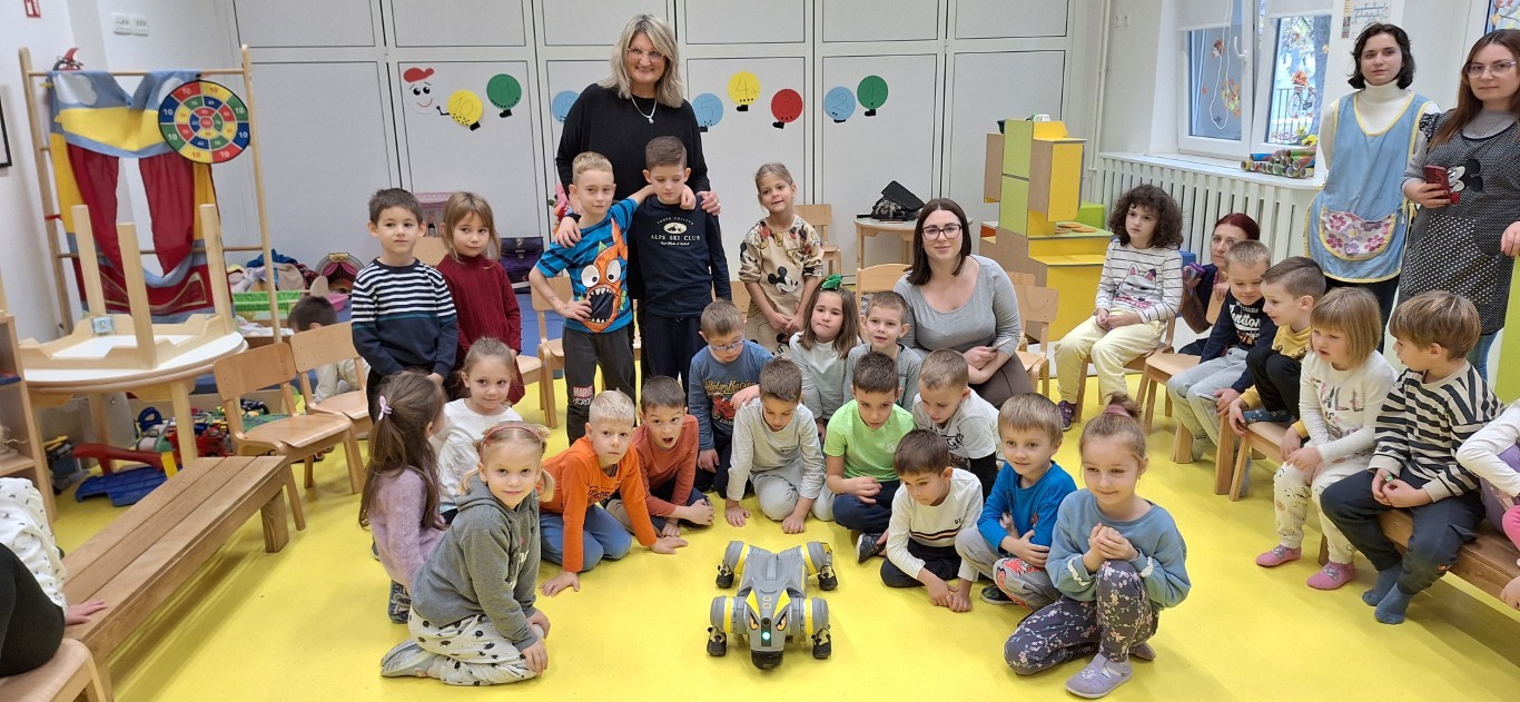 Zahvaljujući gospodinu Miroslavu Špiranoviću i njegovom psu, službeno nazvan Unitree Go 2 Robot Dog, obišli smo vrtić „Maza“ Valpovo (park i knjižnica), vrtić „Maslačak“ Belišće, vrtić „Bambi“ Valpovo i vrtić u Ladimirevcima. Robotiku je djeci u vrtićima približio na njima razumljiv način Dragan Francuz, a poslije toga je robot pas razveselio sve mališane. Kroz ove radionice prošlo je oko 130 djece.