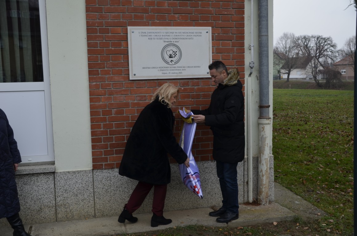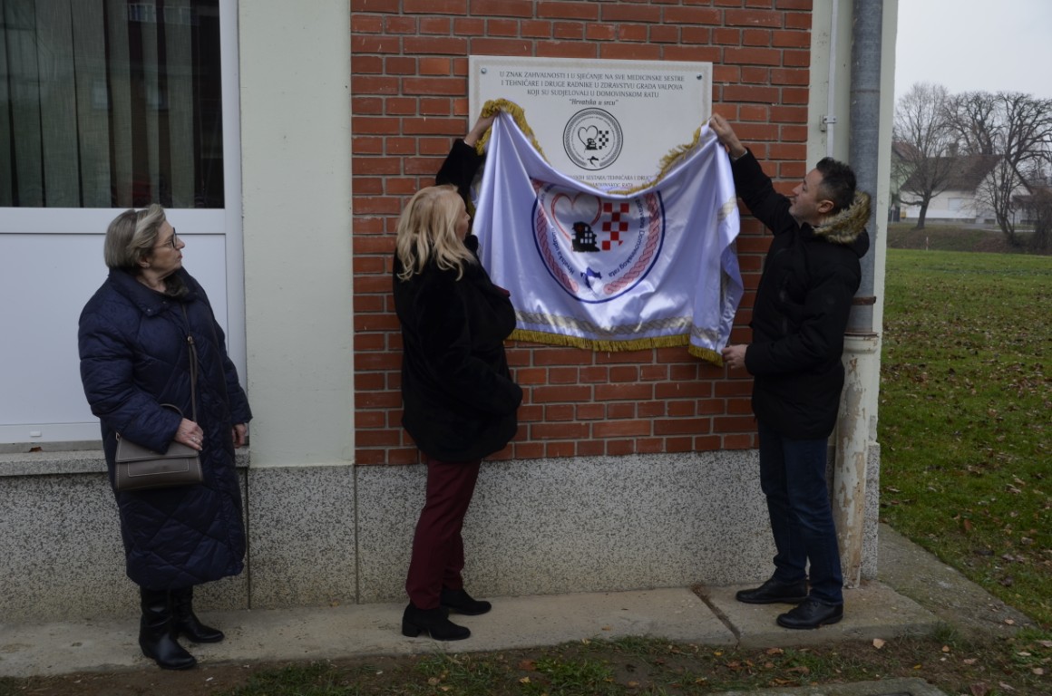 Ploču su u nazočnosti brojnih sudionika konferencije zajednički otkrili Ljerka Pavković, predsjednicu Hrvatske udruge medicinskih sestara/tehničara i drugih radnika u zdravstvu Domovinskog rata i gradonačelnik Matko Šutalo, a posvećene medicinskim sestrama, tehničarima i svim zdravstvenim djelatnicima koji su nesebično služili u Domovinskom ratu, spašavali živote i svojim znanjem i humanošću pridonijeli obrani Domovine.