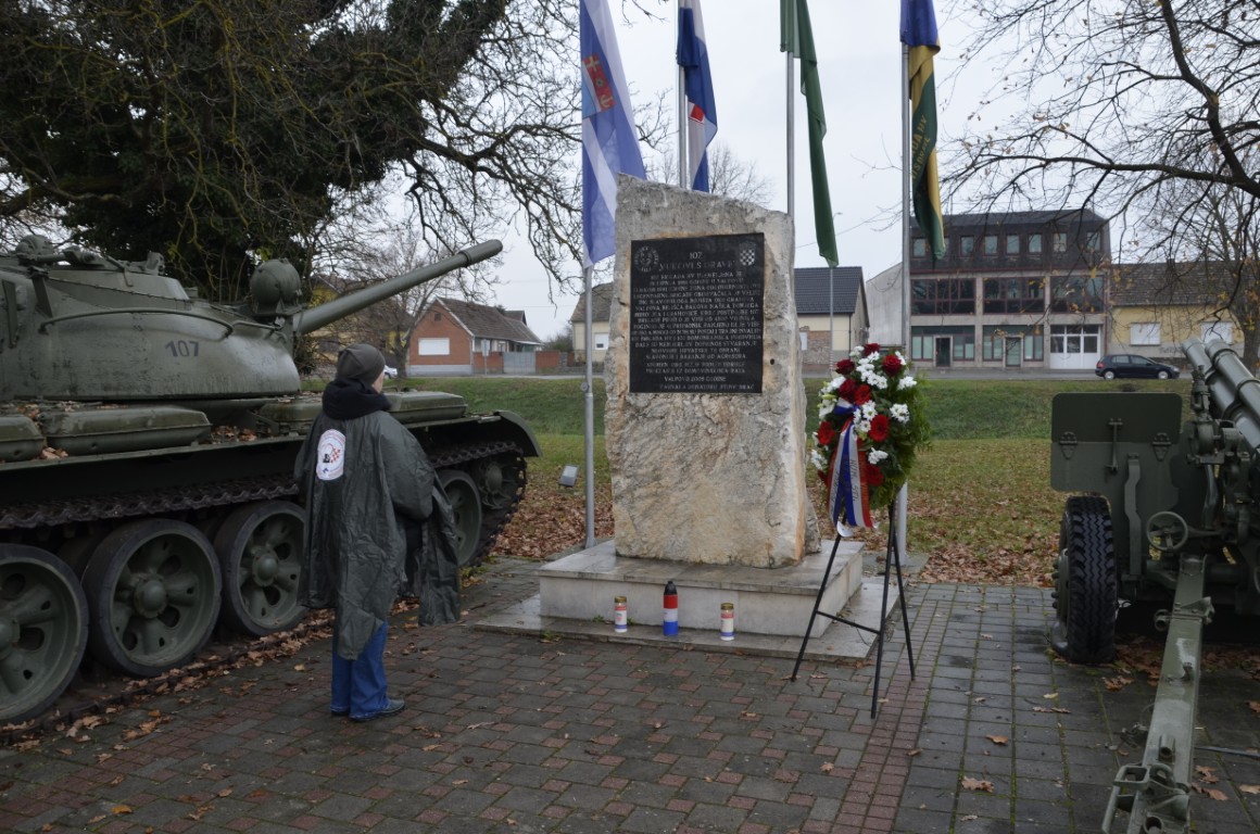 Spomen ploču je posvetio i molitvu poveo župnik Zvonko Mrak, a potom su Ljerka Pavković, profesorica doktorica Silva Butković Soldo i gradonačelnik Matko Šutalo položili vijenac na spomenik 107. brigade.