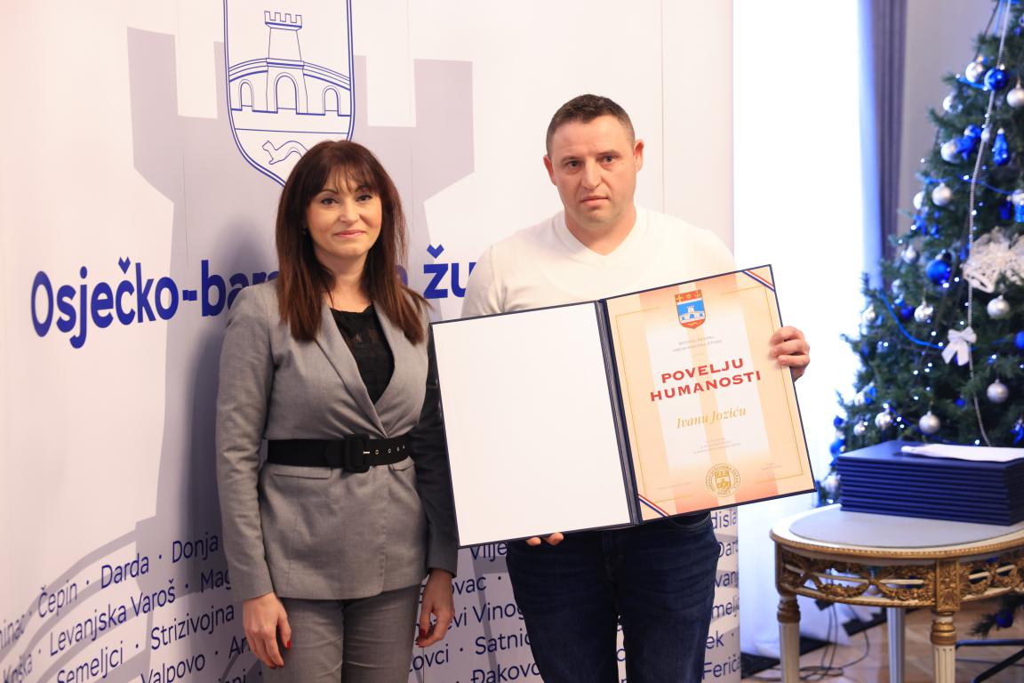 – Danas dodjeljujemo Povelju humanosti kao najveće priznanje za humana djela zaslužnim stanovnicima naše predivne Osječko-baranjske županije. Njihova djela govore sama za sebe, a Povelja humanosti simbolizira sve što oni rade tijekom svog života, pa tako i ove godine za našu zajednicu. Svim dobitnicima iskreno i od srca zahvaljujem na njihovu doprinosu očuvanju i spašavanju ljudskih života, na marljivom i predanom radu kada je to najpotrebnije. Zahvaljujem i darivateljima krvi i dečkima koji su spasili dva života iz podivljale rijeke Drave. Želim im dobro zdravlje i da nastave raditi ovako vrijedno, marljivo i predano za svoju zajednicu. To su ljudi na čija se djela trebamo svi zajedno ugledati – rekla je županica Nataša Tramišak na prigodnoj svečanosti u sjedištu Županije u Osijeku.