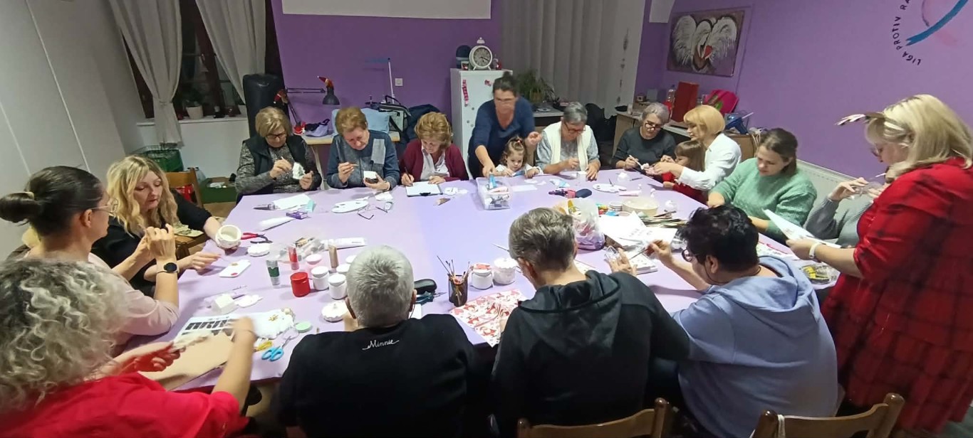 Sudionice su s puno mašte i truda ukrašavale veliki broj gipsanih ukrasa, a vrijedne volonterke izradile su i prekrasne predmete u decoupage tehnici te ručno rađene privjeske-anđelčiće. Sve ove unikatne radove (ali i one koje izrađuju učenici Osnovne i Srednje škole Valpovo) moći ćete pronaći na štandu Lige protiv raka Valpovštine na Humanitarnoj akciji "Kuglice dobrih želja" na Božićnom sajmu U SUBOTU, 20.12. u Agroparku Valpovo.
