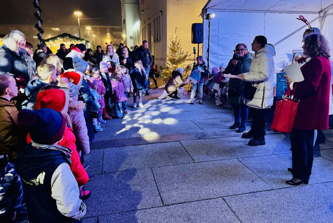 BELIŠĆE U petak na Trgu Ante Starčevića, gradonačelnica grada Belišća Ivana Jerbić i Muzej „Belišće“ su podijelili poklone djeci koja su sudjelovala u božićnoj potrazi za blagom.