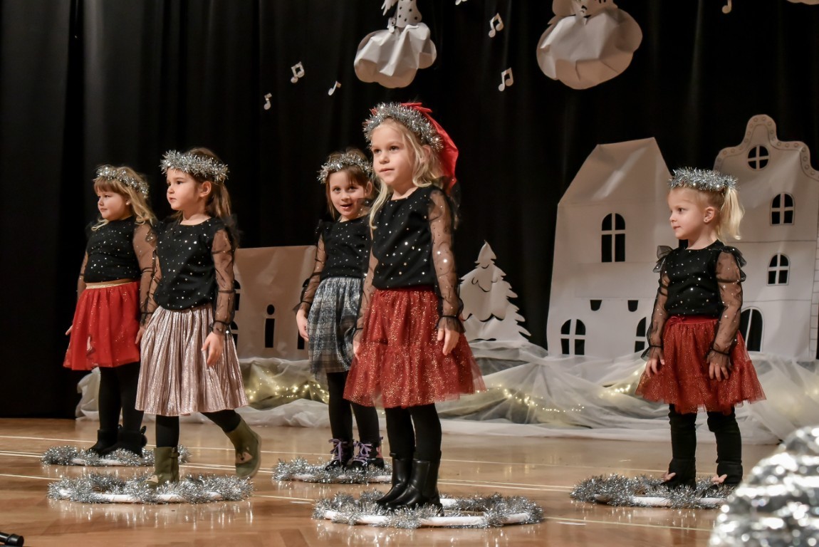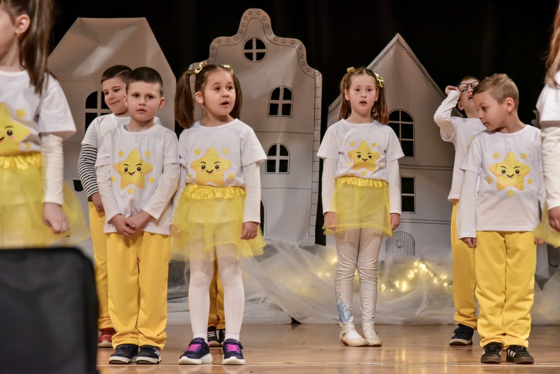 „Oblačići“ iz Dječjeg vrtića„MAZA“ s odgojiteljicama Božicom Špoljarić i Ana Mari Mijatović, „Štrumfovi“ iz Dječjeg vrtića „Moj Bambi“ iskazali su se s koreografijom na pjesmu „Snowman“ koju su pripremili uz svoje odgojiteljice Marinu Blažević Špoljarić i Stelu Vunderlih, „Bombončići“ iz Dječjeg vrtića „Maza“ su sa svojim odgojiteljicama Petrom Brezovac i Jelenom Vinković pripremili recitaciju „Moje božićno veselje“, a nastupile su i „Zvjezdice“ iz Dječjeg vrtića „Maza“, Područnog odjela Ladimirevci. Oni su sa svojim odgojiteljicama Kristinom Čehajić i Hanom Funtak pripremili recitaciju „Čestit Božić, dobri ljudi“, a nakon recitacije otpjevali i pjesmu pod nazivom „Vjerujete li?“. „Iskrice“ su s odgojiteljicama Ivanom Svrtan i Nikolinom Vuksanić pripremili recitaciju „Želja božićnog drvca“. Nakon recitacije, Iskrice su zaplesale uz pjesmu I am a little star, a program je završen željom: Radost u srcu, u duši veselje, osmijeh na licu! Pored sebe da imate drage vam ljude i da vam ovaj Božić jako sretan bude!