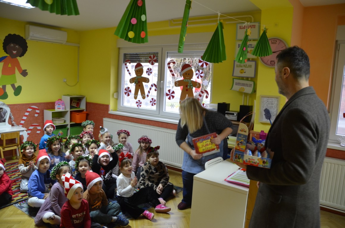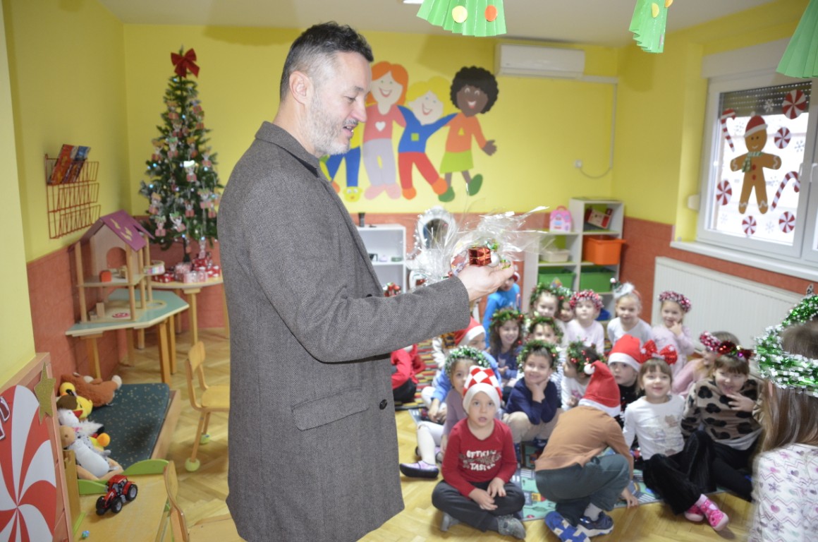 U svim su odgojnim skupinama gradonačelnika dočekali s radošću i veseljem, pokazali kako recitiraju ili pjevaju i darivali ga sitnicama koje su sami napravili uz pomoć svojih odgajateljica.