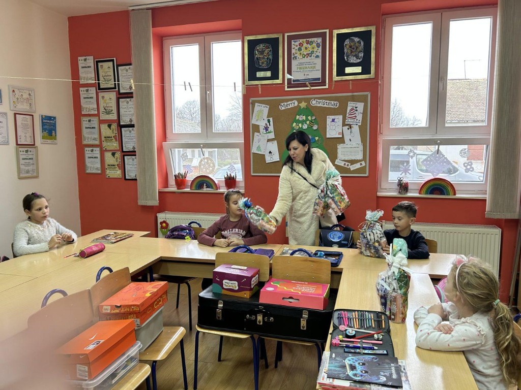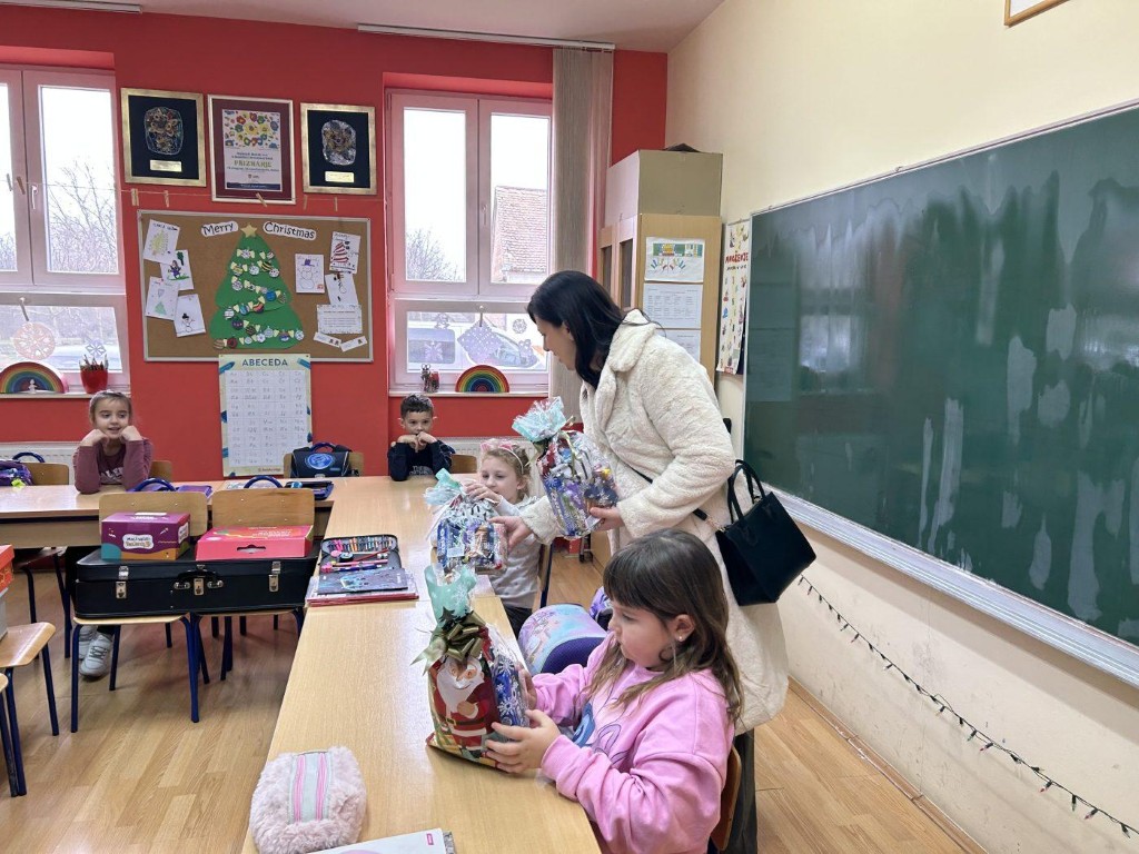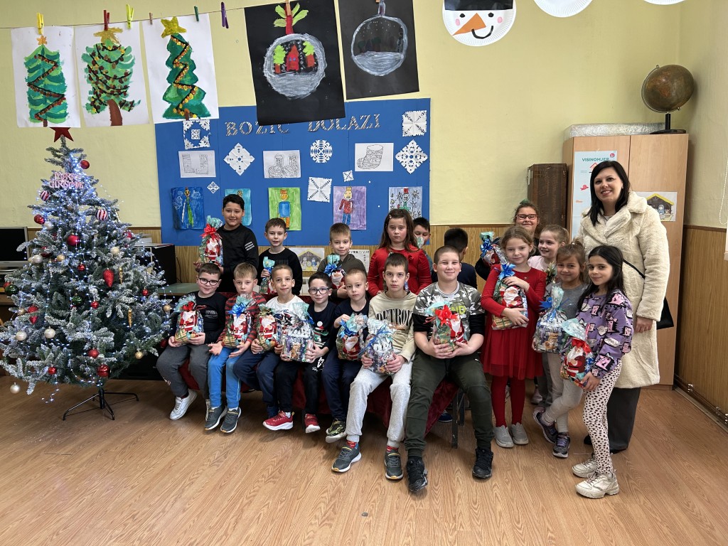 BELIŠĆE Gradonačelnica Ivana Jerbić sa suradnicima uručila je slatke paketiće za učenike u Osnovnoj školi u Belišću te područnim školama u Veliškovcima, Vinogradcima i Bocanjevcima.