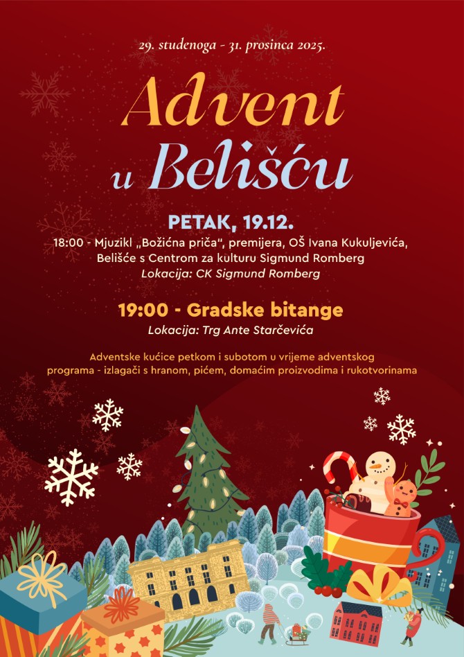 BELIŠĆE Organizatori Adventa u Belišću danas vas pozivaju na bogat i raznolik program.