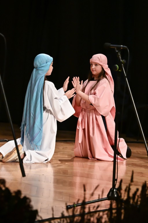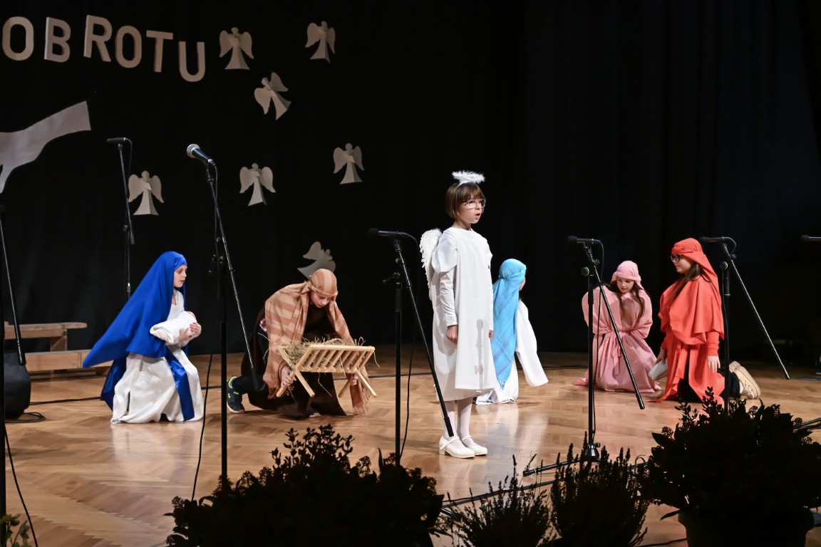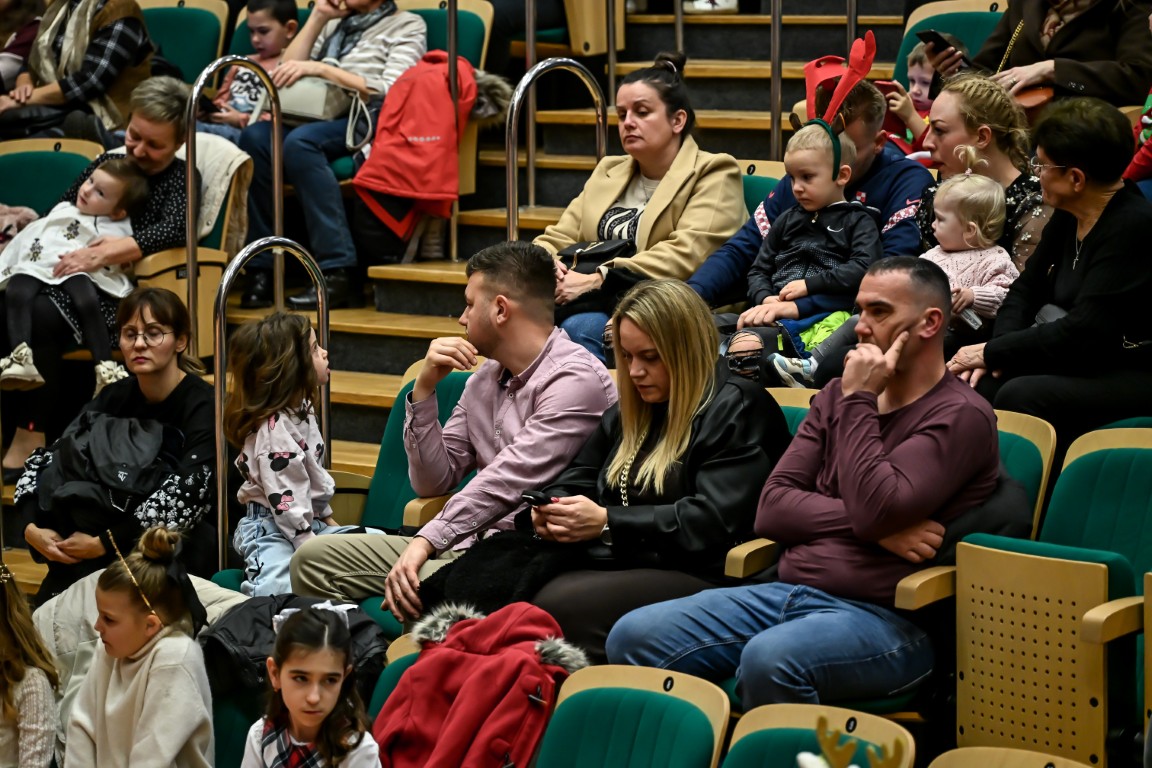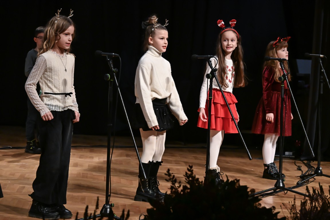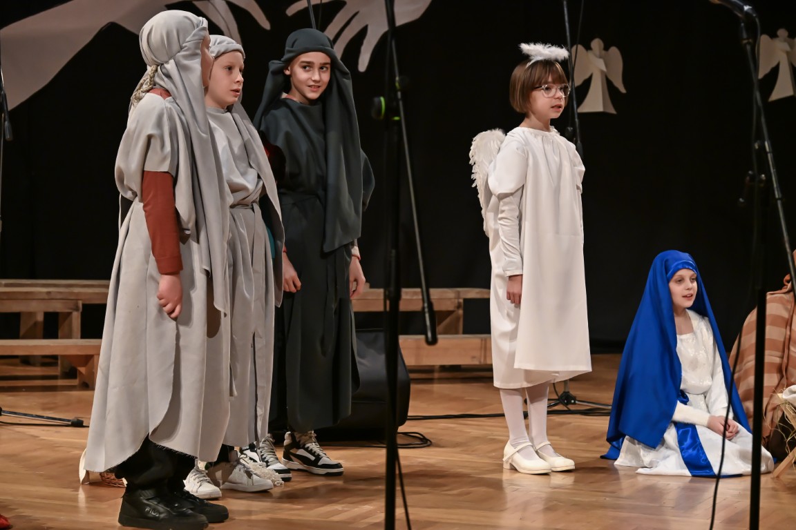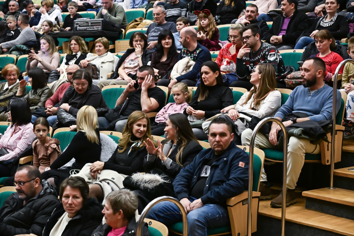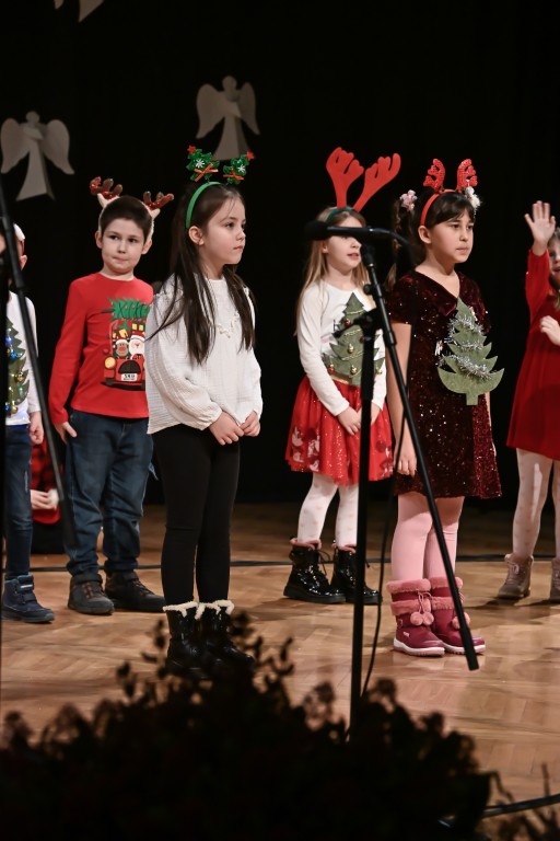 Pod vodstvom Tie i Mie redali su se školski zbor uz vodstvo učiteljice Maje Huis i soliste Mariju Marčeta i Benjamina Bencak, učenici 1. a razreda, koji su uz mentorstvo učiteljice Vanje Bošnjak pripremili nekoliko recitacija, a uslijedila je glazbena točka 1. b razreda uz mentorstvo Ivane Andrić Pejak. Učenici 4. c razreda nastupili su uz igrokaz "Ljubav je najvažnija" koji su pripremili uz mentorstvo učiteljice Biserke Medved, učenici 2. b razreda koji su uz podršku učiteljice Sanele Čuljak pripremili nekoliko recitacija i jedan mali igrokaz pod naslovom "Mačka i božićno drvce", a nakon njih učenici 2. a razreda uz mentorstvo učiteljice Vanese Hegeduš. Učenici 4. d razreda s učiteljicom Jadrankom Ivić pripremili su igrokaz "Betlehemski pastiri klanjaju se Spasitelju". Bruna Mihalj izvela je monolog Sanje Slivar „Kroz penđer“, Vita Jugović nastupila je s pjesmom Walking in the air, a vedrinu i toplinu unijeli su učenici 3. a razreda i učiteljica Senka Špoljarić igrokazom "Nova godina".