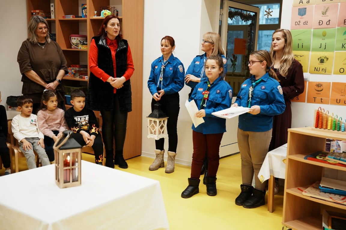 Razlog ovog posebnog posjeta bio je podjela Betlehemskog svjetla mira, ali i upoznavanje mališana sa skautskim pokretom, kojem će se moći priključiti čim krenu u osnovnu školu. Kada je blistavi betlehemski plamen zasjao u vrtićkom fenjeru, prostorom se proširio osjećaj topline i zajedništva, a druženje s izviđačima nastavilo se uz pripreme za njihov sljedeći zadatak – posjet Matici umirovljenika grada Belišća.