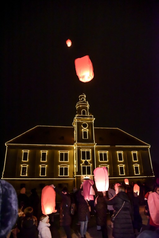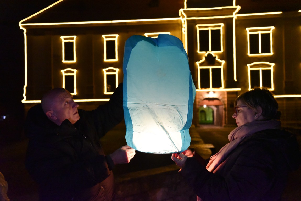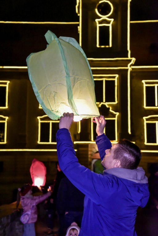 VALPOVO I sinoć je nebo nad Valpovom bilo prošarano raznobojnim lampionima koji su nosili poruke mira i prosperiteta.