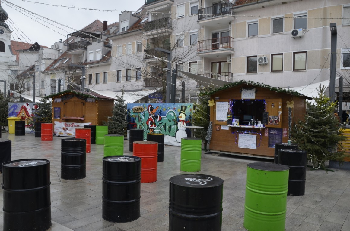 VALPOVO Promjenjivo i vlažno vrijeme uskratilo je zadovoljstvo pravog druženja na Badnjak u Adventskom selu u središtu Valpova.