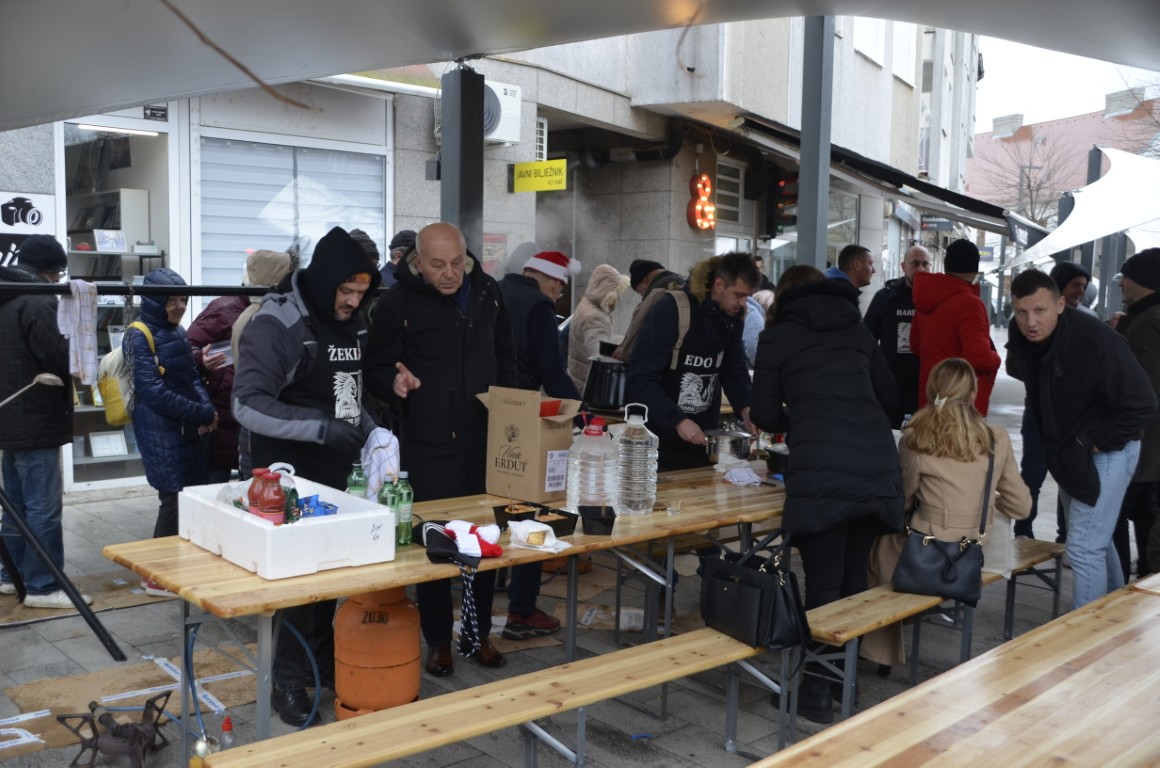 Tristotinjak porcija koje su pripremili i podijelili Tura, Žeki, Bare i Edo zadovoljilo je potrebe i onih koji su svemu usprkos blagdansku porciju fiša blagovali tu, na trgu, ali i onih koji su ga ponijeli kući i uživali u miru toplog doma.