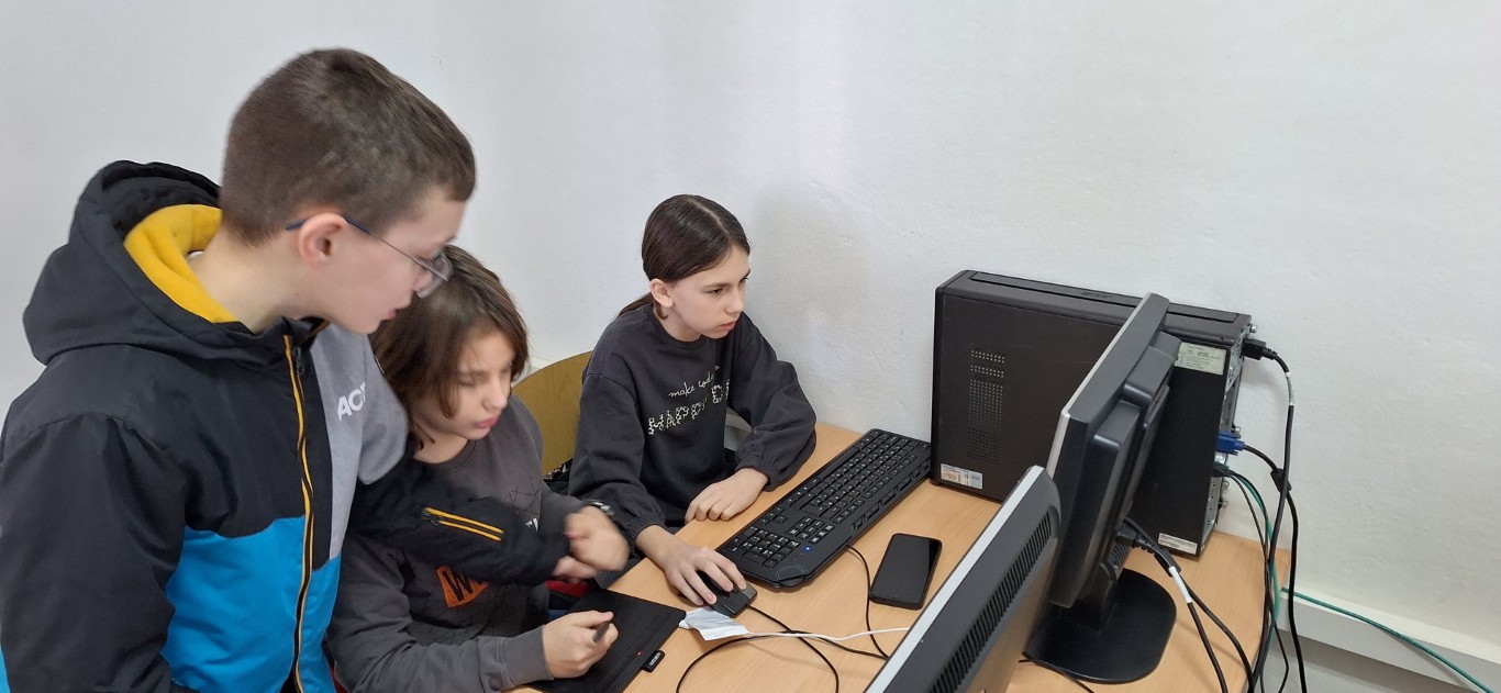 Starija skupina učenika suočila se s nešto zahtjevnijim zadatkom – pokušali su oživjeti stolno računalo proučavajući i spajajući njegove ključne komponente poput RAM‑a, tvrdog diska i matične ploče. Za mnoge je to bio prvi susret s unutrašnjosti računala, što je izazvalo veliko oduševljenje.
